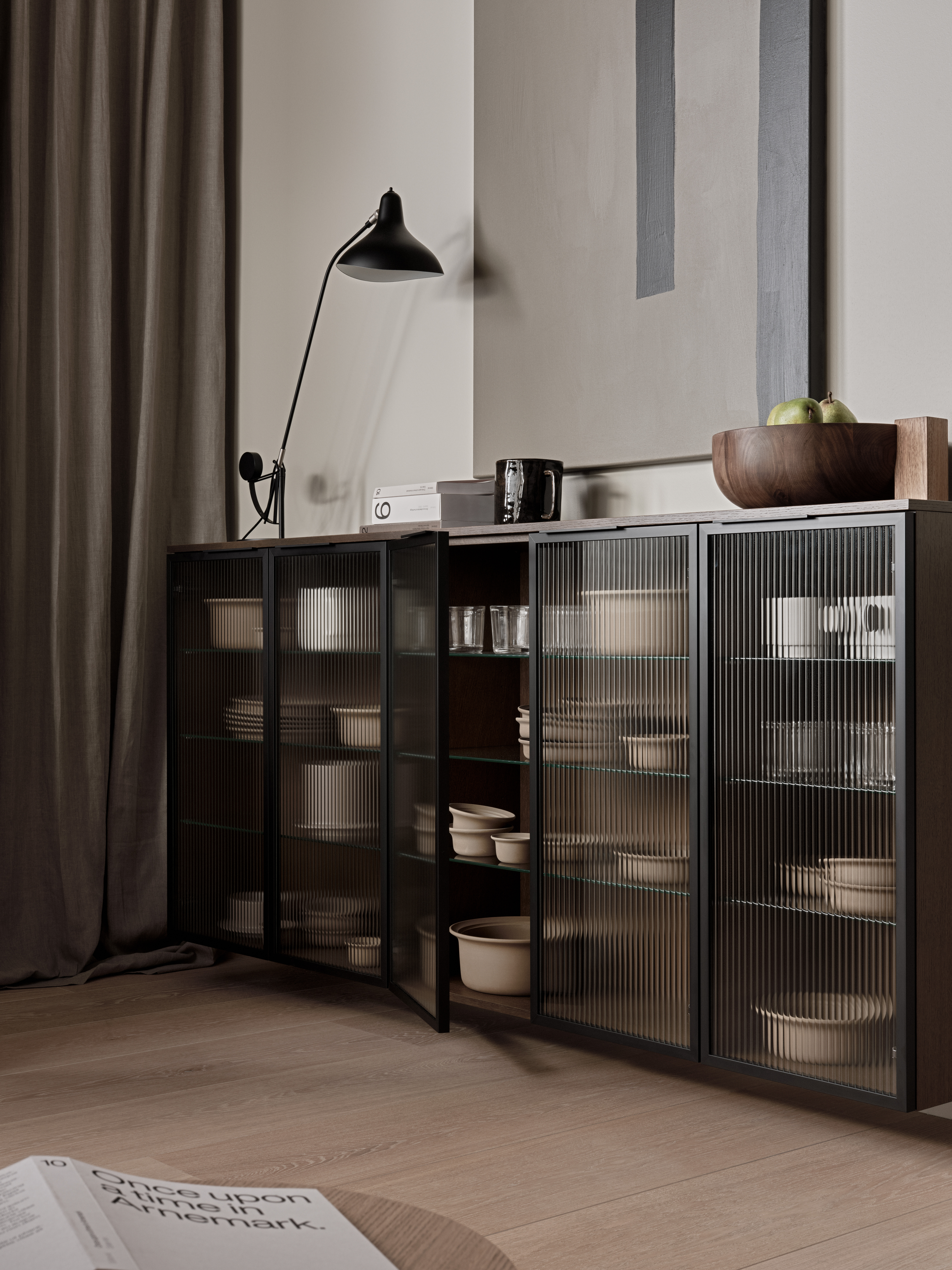 Vitriinissä on mahdollisuus pitää esillä persoonallinen ja näyttävä esillepano kauneimmasta ja rakkaimmista suosikeistasi. Voit luoda keittiöön visuaalisuutta, mikä puolestaan voi tehdä huoneesta muuta esillepanoa eläväisemmän ja erottua haluamallaan tavalla. Vitriinit sopivat moneen tyyliin ja makuun.
