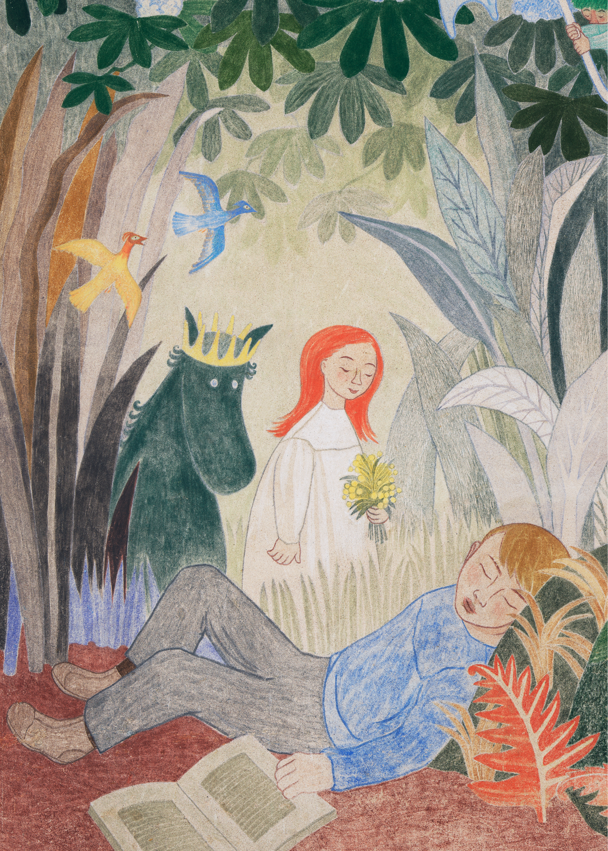 Filling two floors of the museum, the exhibition’s main focus is on the ambitious commissions that Jansson completed for public venues in the 1940s and 1950s. It introduces her lesser-known mural output in its entirety, from her smaller decorative paintings to her largest monumental frescoes. Jansson’s public paintings provide a glimpse into the boundless depths of her imagination and the idyllic worlds of fantasy that offered the artist an escape from the horrors of war.