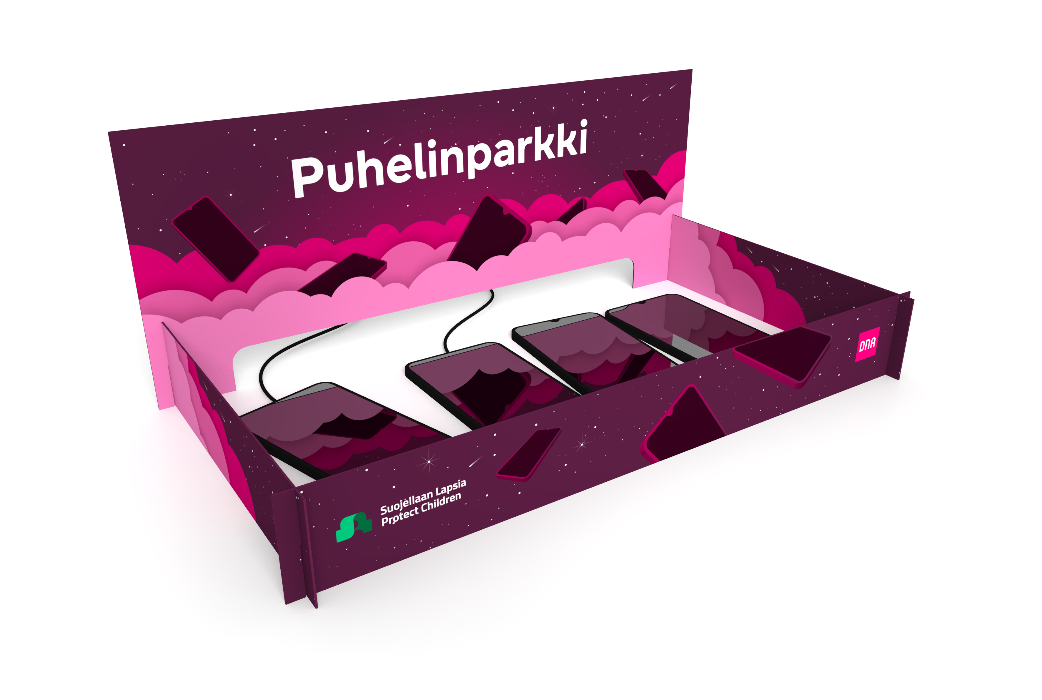 The Puhelinparkki enables regular breaks from digital device usage for both children and the entire family. It fosters togetherness, shared activities, and conversations among family members. Especially in the evenings, the Puhelinparkki facilitates relaxation and better sleep. Puhelinparkki can be ordered free of charge from DNA’s website.