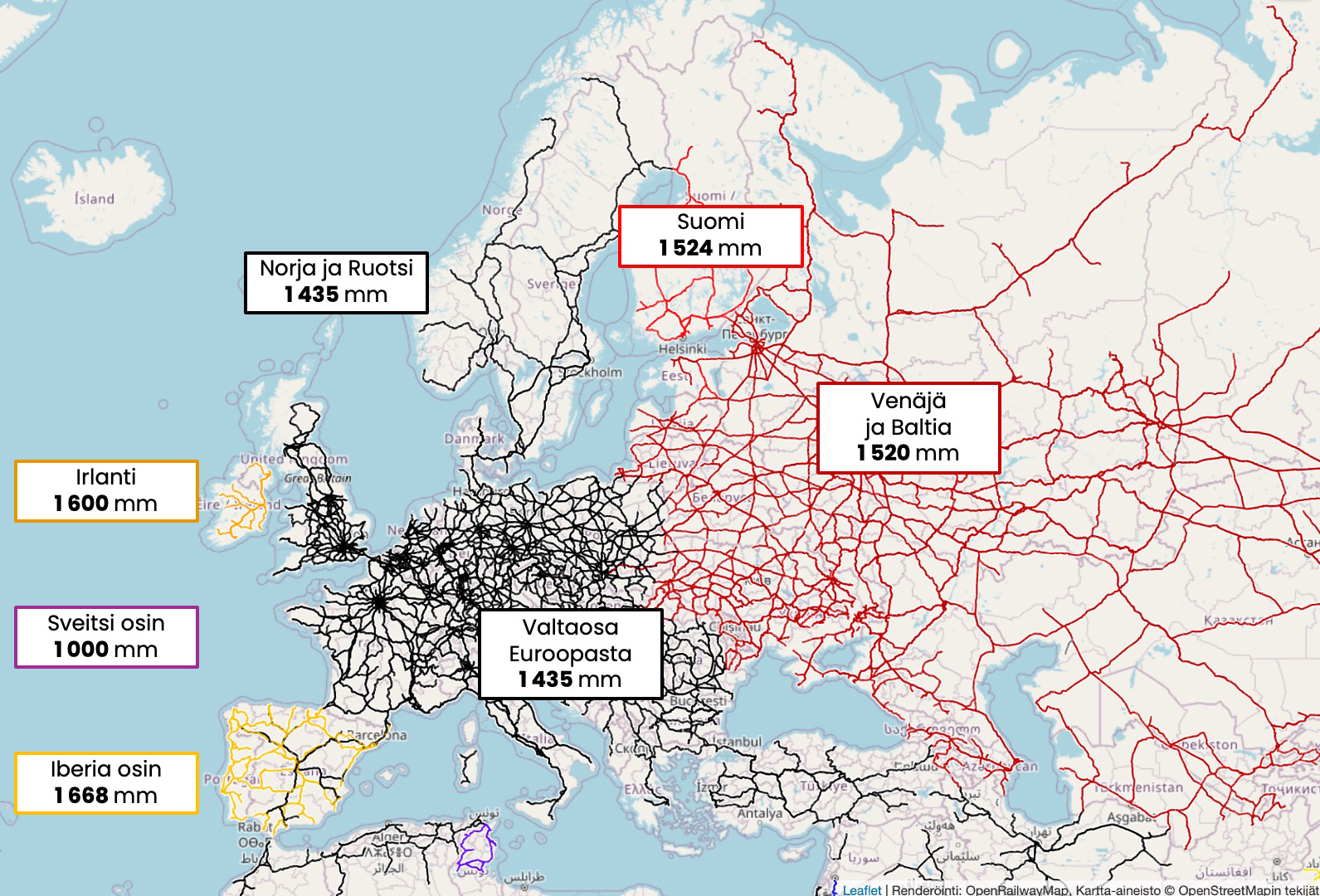 Uuden radan suunnitteluun ja rakentamiseen vaikuttavia merkittäviä kustannuseroja ei havaittu suomalaisen ja eurooppalaisen raideleveyden välillä. Nykyisten ratojen raideleveyden muutosten kustannuksia on arvioitu liikenne- ja viestintäministeriön raideleveysselvityksessä (2023).