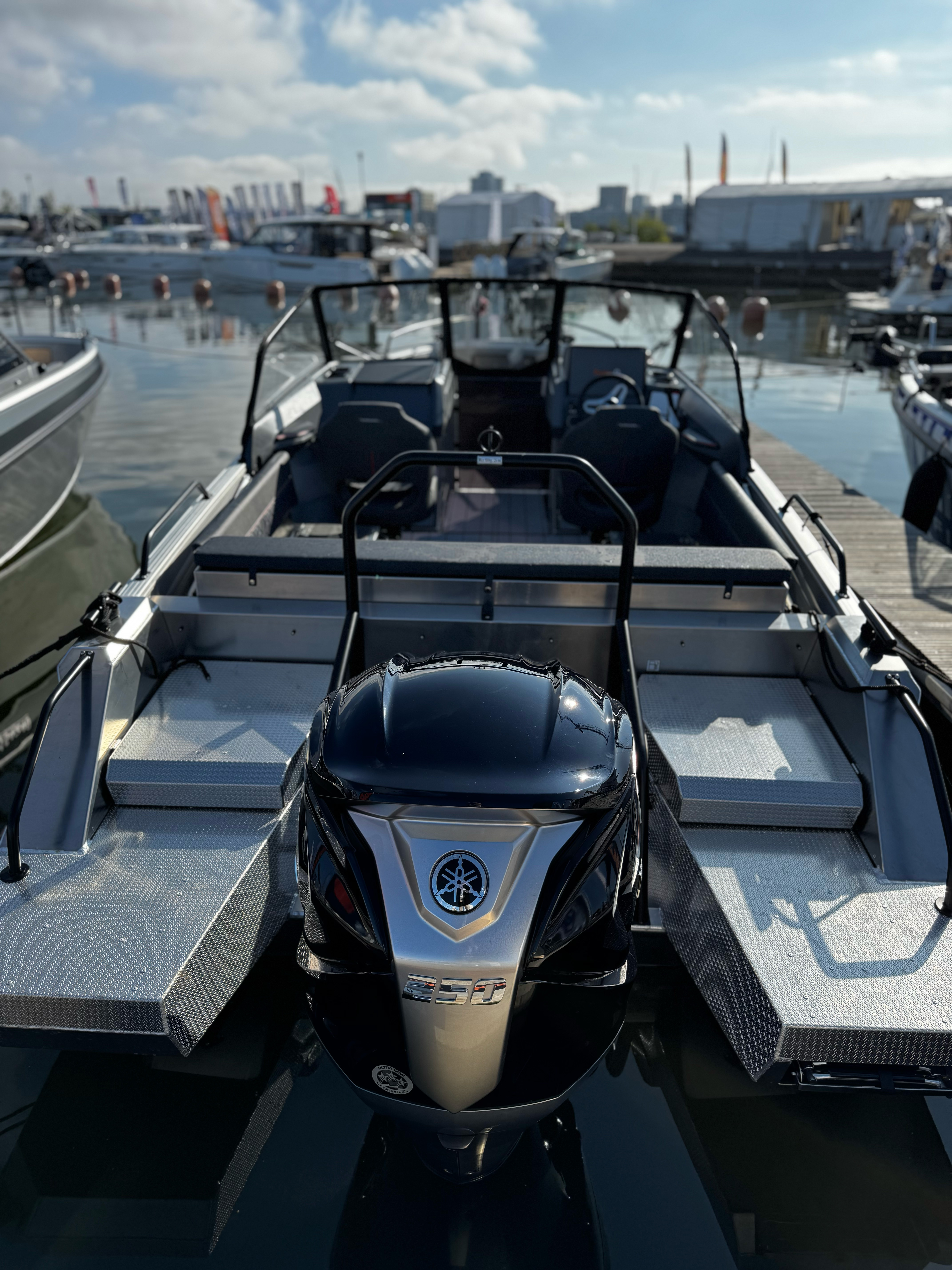 Buster Magnum VMAX er utstyrt med Yamahas nye VF250XB-motor. Motorens offisielle europapremiere skjer senere i august, men Buster viser båten med den nye motoren allerede på Helsingfors flytende båtutstilling Uiva Flytande på Drumsö 14.–17. august.