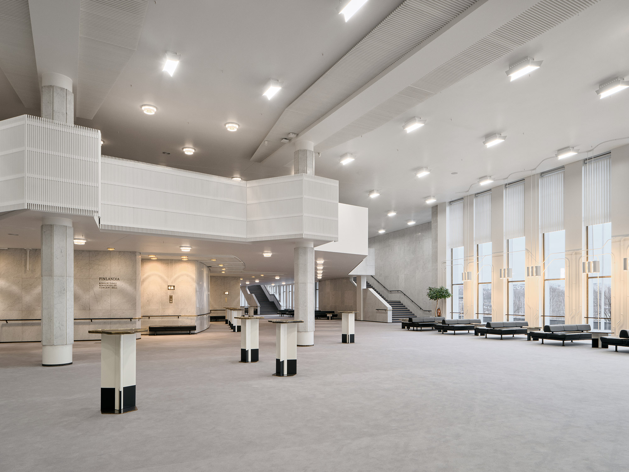 Lähes kolme vuotta kestänyt Finlandia-talon peruskorjaus valmistui viime vuonna. Alvar Aallon suunnittelema, suojeltu rakennus on Suomen ikonisimpia moderneja rakennuksia.