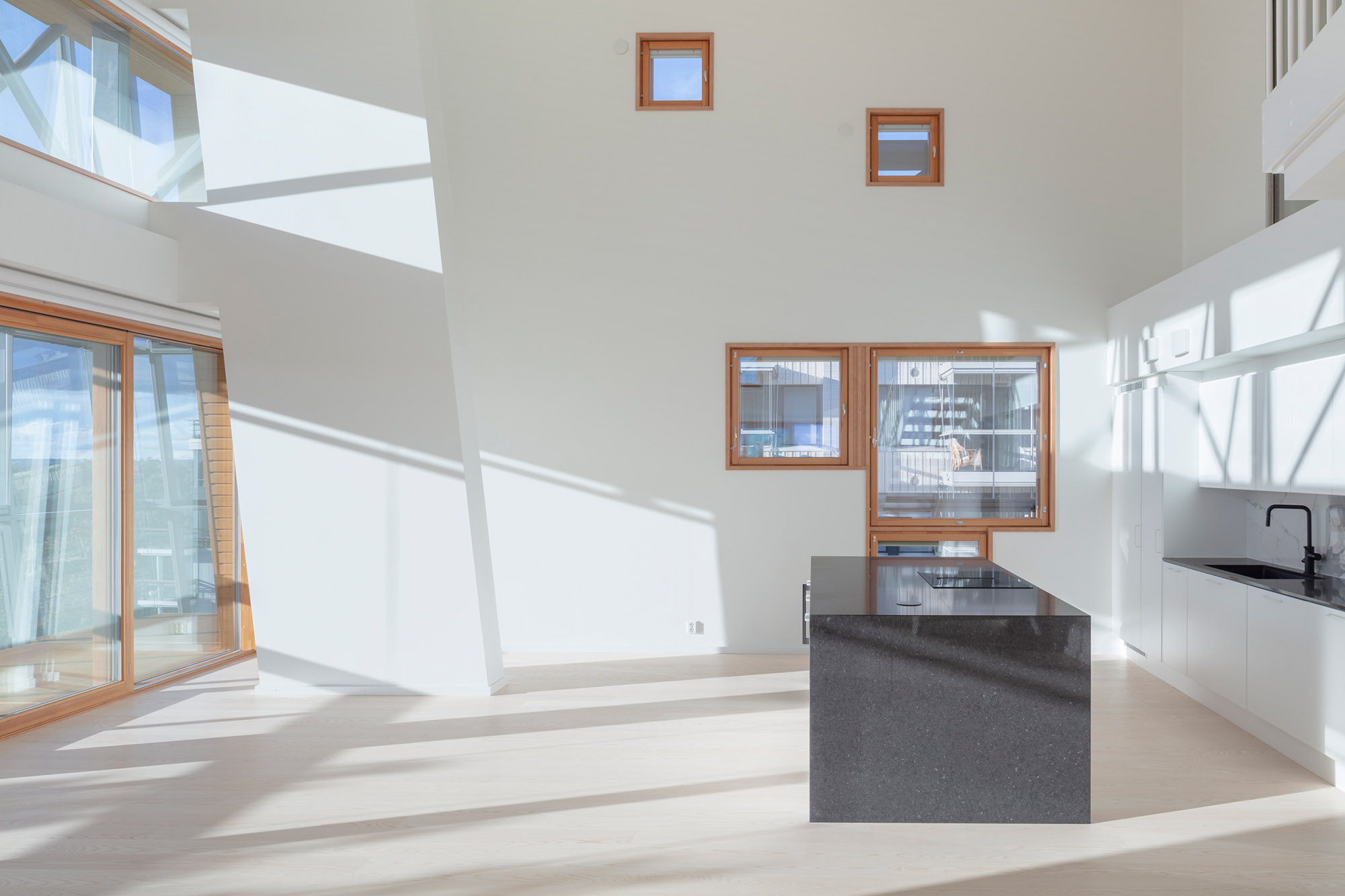 Meanderin veistoksellinen muoto tarjosi mahdollisuuden toteuttaa tavallisuudesta poikkeavia huoneistoja