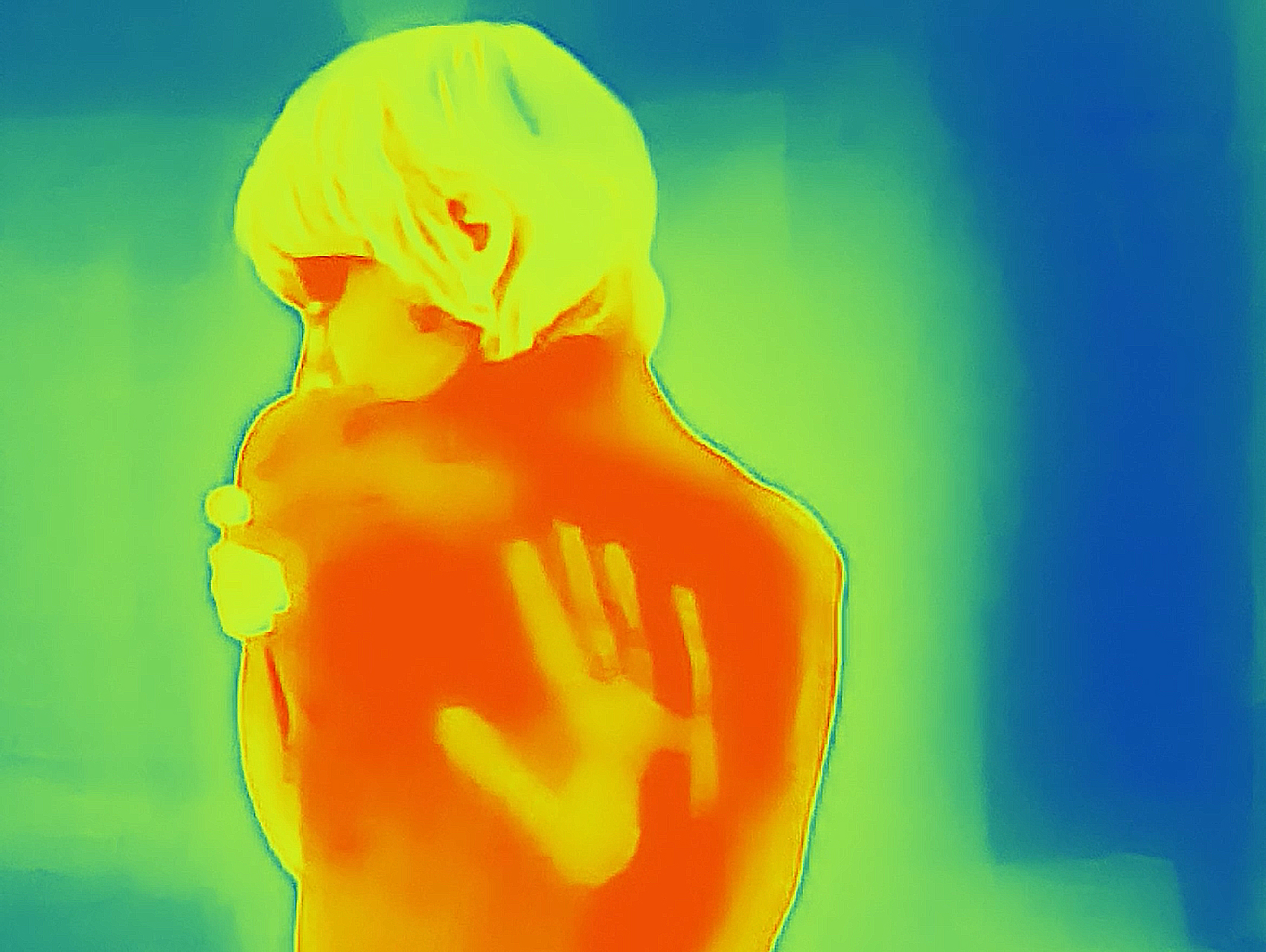 The video piece makes use of both surveillance and thermal imaging and is based on the artist’s personal experience of normative exercise of power in a museum space, asking whether all kinds of bodies have safe access to art.