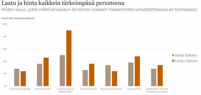 Erikoiskaupan liiton laaja kuluttajatutkimus kartoitti yli 55-vuotiaiden suomalaisten kulutustottumuksia. Tutkimuksen mukaan ikääntyneet kuluttajat ovat hintatietoisia, mutta laatu on tärkeämpi kriteeri ostospäätöksen yhteydessä. Laadun merkitys korostuu eniten kodinkoneiden ja elektroniikan ostamisen yhteydessä.
