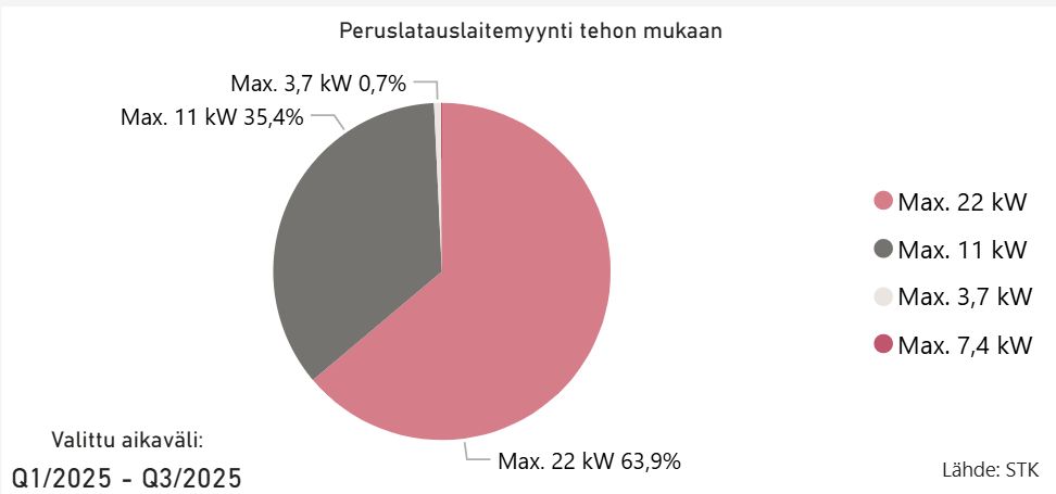 Kiinteistöihin asennettavia sähköauton latauslaitteita myytiin vuoden kolmannella neljänneksellä 7 310 kappaletta, mikä on 5,7 prosenttia vähemmän kuin vuotta aiemmin samalla ajanjaksolla. Koko alkuvuoden 2025 myynti oli syyskuun lopussa 20 616 laitetta, missä on 5,9 prosenttia laskua edellisvuodesta, kertoo Sähköteknisen Kaupan Liiton (STK) tuore tilasto.
