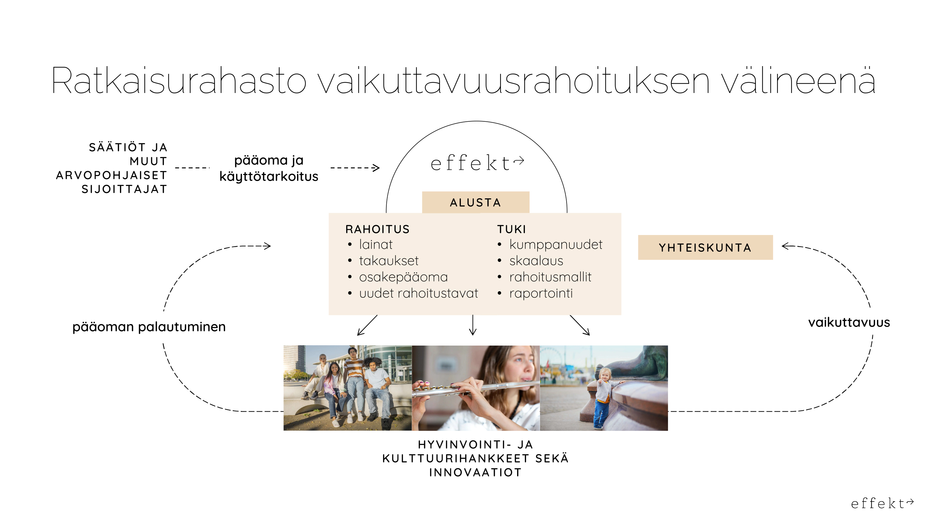 3) Andra finansiärer, bland annat stiftelser och fonder. Genom Effektfonden kan finansiärer vara med och främja positiv mätbar samhällsförändring på ett nytt sätt.