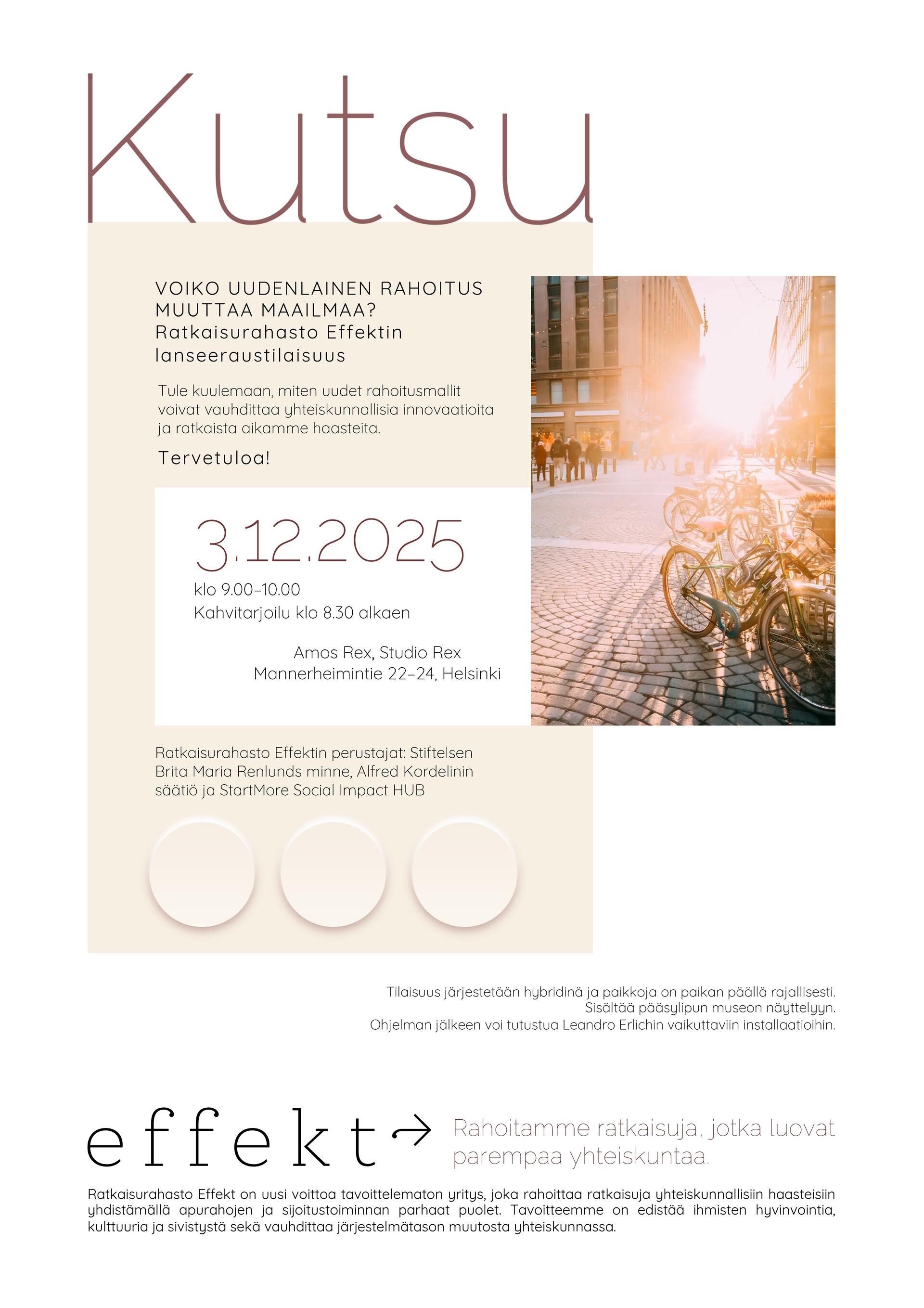 Effektfonden Effekt Ab lanseras i Amos Rex onsdagen 3 december kl 9-10. Välkommen. Du kan följa evenemanget på distans via följande länk: https://videonet.fi/Effekt/