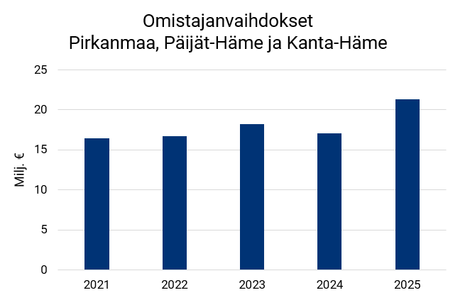 Finnveran rahoittamien yrityskauppojen määrä kasvoi eniten Pirkanmaalla, ja myös rahoitettujen kauppojen arvo nousi edellisvuodesta. Vaikka taso on edelleen jäljessä huippuvuotta 2023, pohja näyttäisi olevan takana.