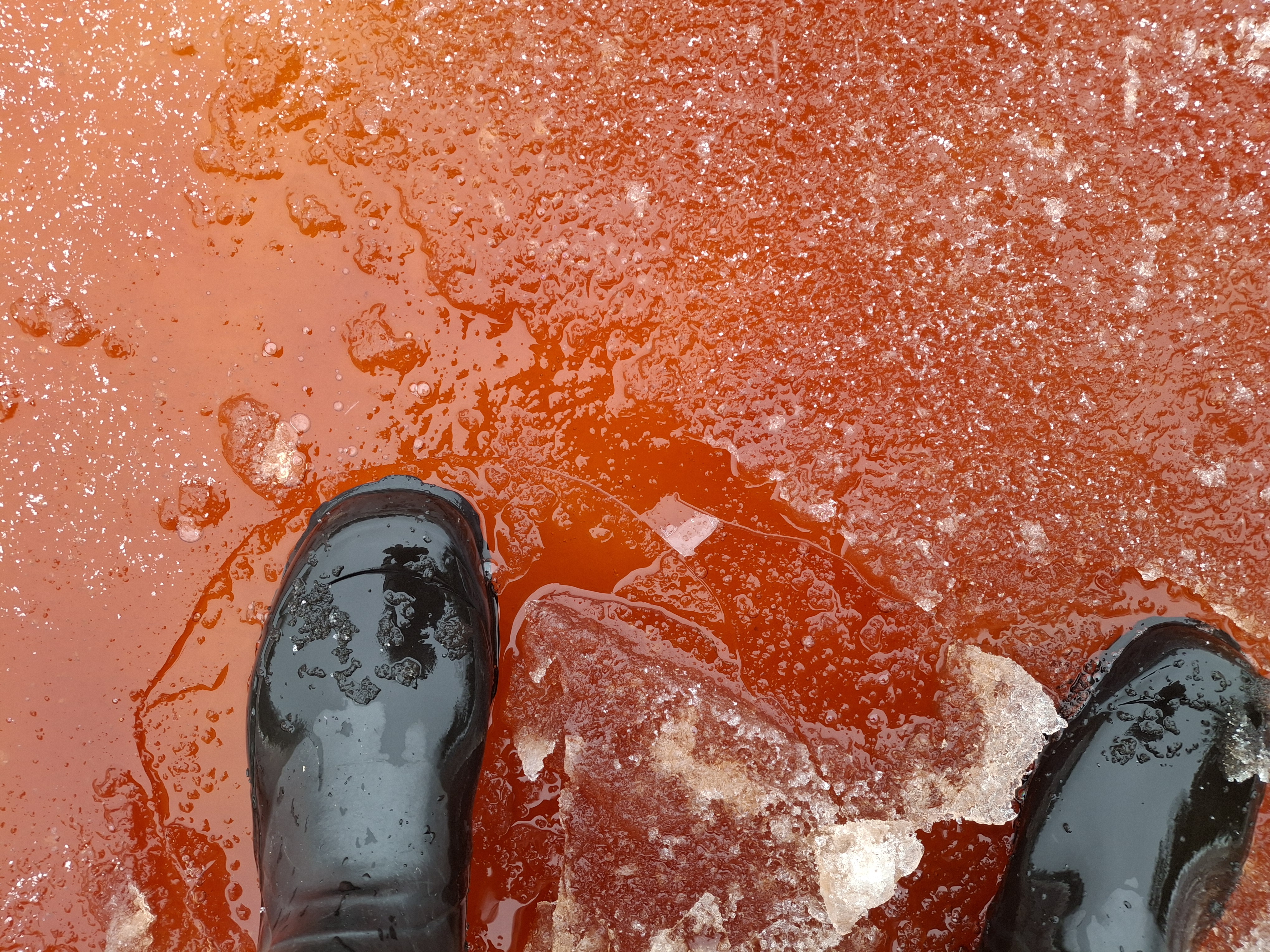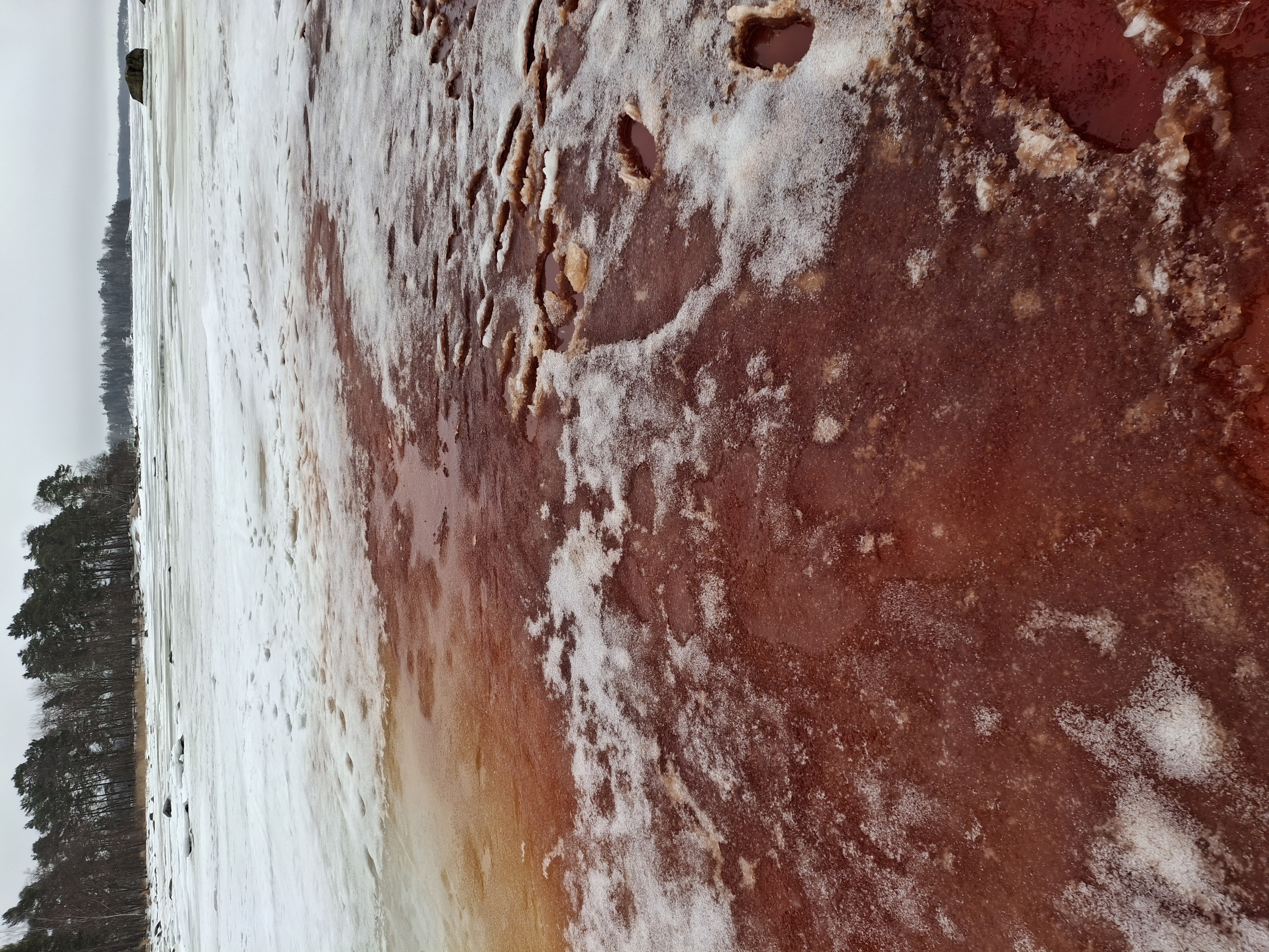 Punaiseksi värjäytynyt jää ja vesi on herättänyt huomiota Suomenlahden rannikolla Helsingin edustalla. Punaruskea, paikoitellen jopa verenpunainen väri johtuu hajoavista rakkohauru-levistä vapautuvasta väriaineesta. Rakkohauru tunnettiin aiemmin nimellä rakkolevä, ja se kuuluu merenpohjalla kasvaviin isokokoisiin, kasvimaisiin ruskoleviin.