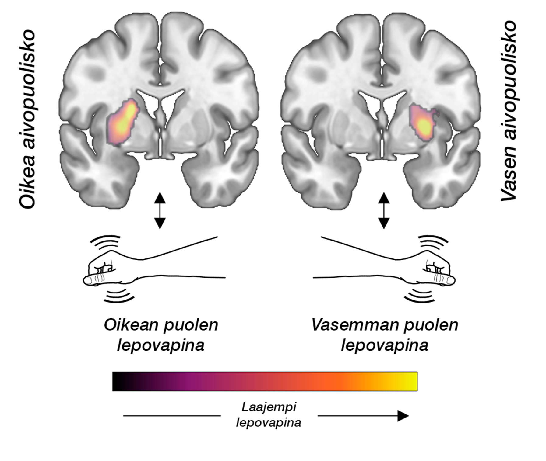 – Tulokset osoittavat, että voimakkaampi lepovapina ei ole yksinkertaisesti merkki pidemmälle edenneestä dopamiinijärjestelmän vauriosta. Vapinan taustalla näyttää olevan osittain erillinen neurobiologinen mekanismi, toteaa artikkelin pääkirjoittaja, neurologian erikoislääkäri LT Kalle Niemi.