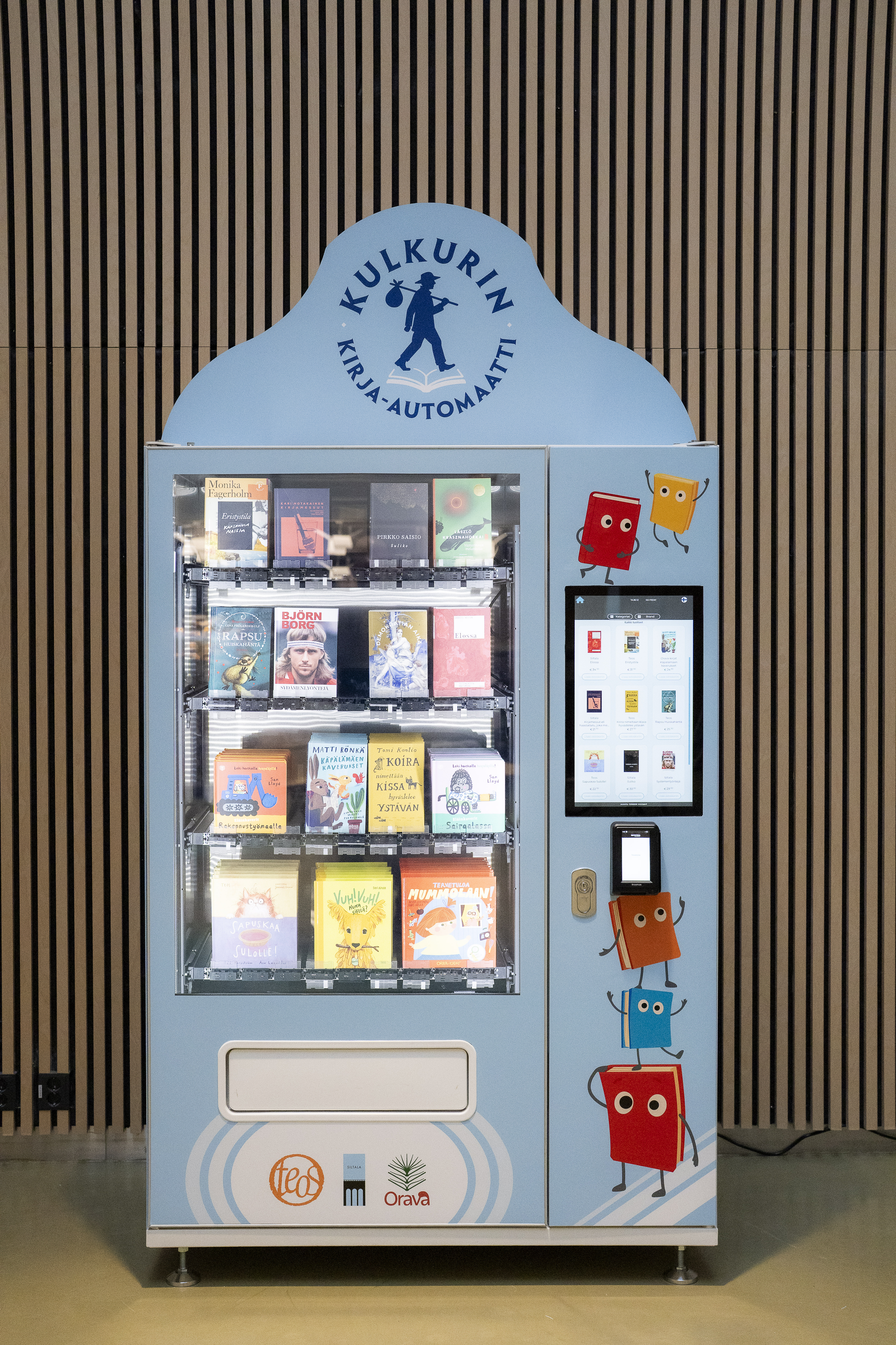 Kirja-automaatti on uudenlainen kirjakaupan muoto, joka täydentää perinteistä kirjakauppaverkostoa ja vastaa nopeasti muuttuneeseen lukemisen tapaan. Siinä missä verkkokaupan toimitusajat voivat olla pitkiä, automaatista kirjan saa käsiinsä heti.