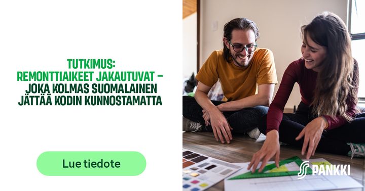 Suomalaisten remontointiaikeet jakautuvat selvästi: noin kolmannes suunnittelee remonttia vuoden sisällä, mutta yhtä moni ei aio käyttää siihen lainkaan rahaa. S-Pankin kyselyn mukaan erityisesti tulotaso ja asumismuoto vaikuttavat siihen, tartutaanko kodin kunnostukseen vai lykätäänkö sitä. Remontin viivästyminen voi kuitenkin kasvattaa kustannuksia myöhemmin.