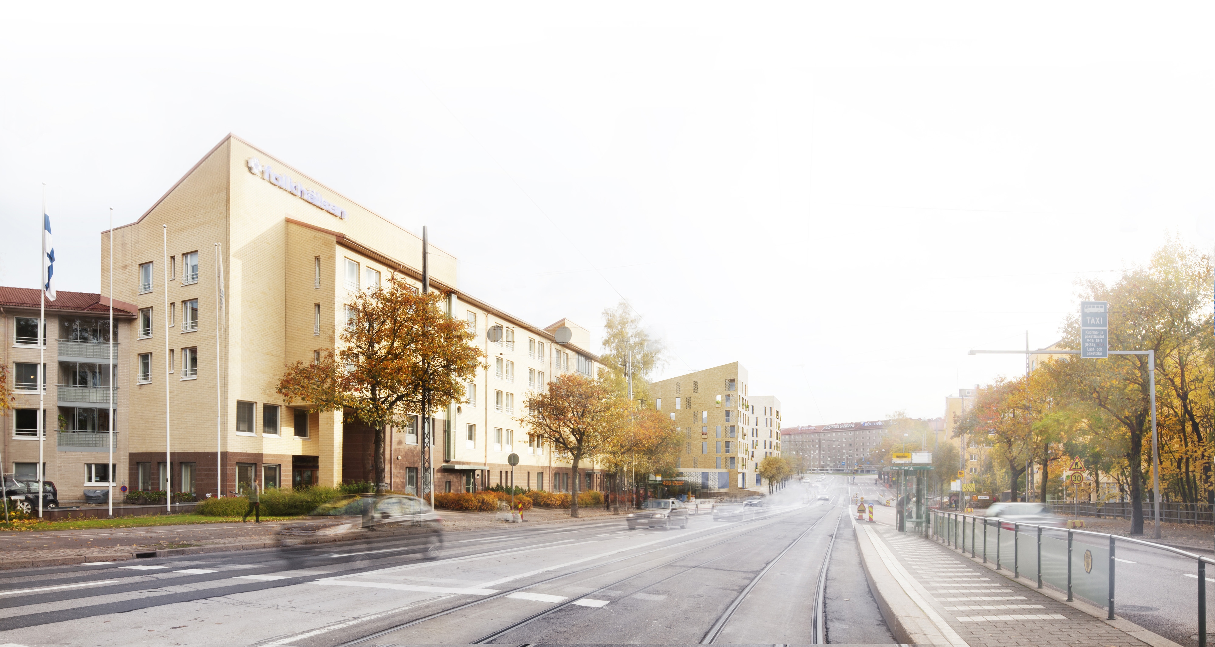 Syftet med arkitekttävlingen, där också en byrå från Sverige deltog, var att i ett stadsbildsmässigt viktigt område vid den livligt trafikerade Mannerheimvägen (40 000 fordon per dygn) få fram en lösning som kompletterar den befintliga servicehushelheten och utgör en bas för det fortsatta detaljplanearbetet. Man efterlyste en arkitektoniskt och funktionellt högklassig, energieffektiv och genomförbar plan för byggande av fritt finansierade ägarbostäder.