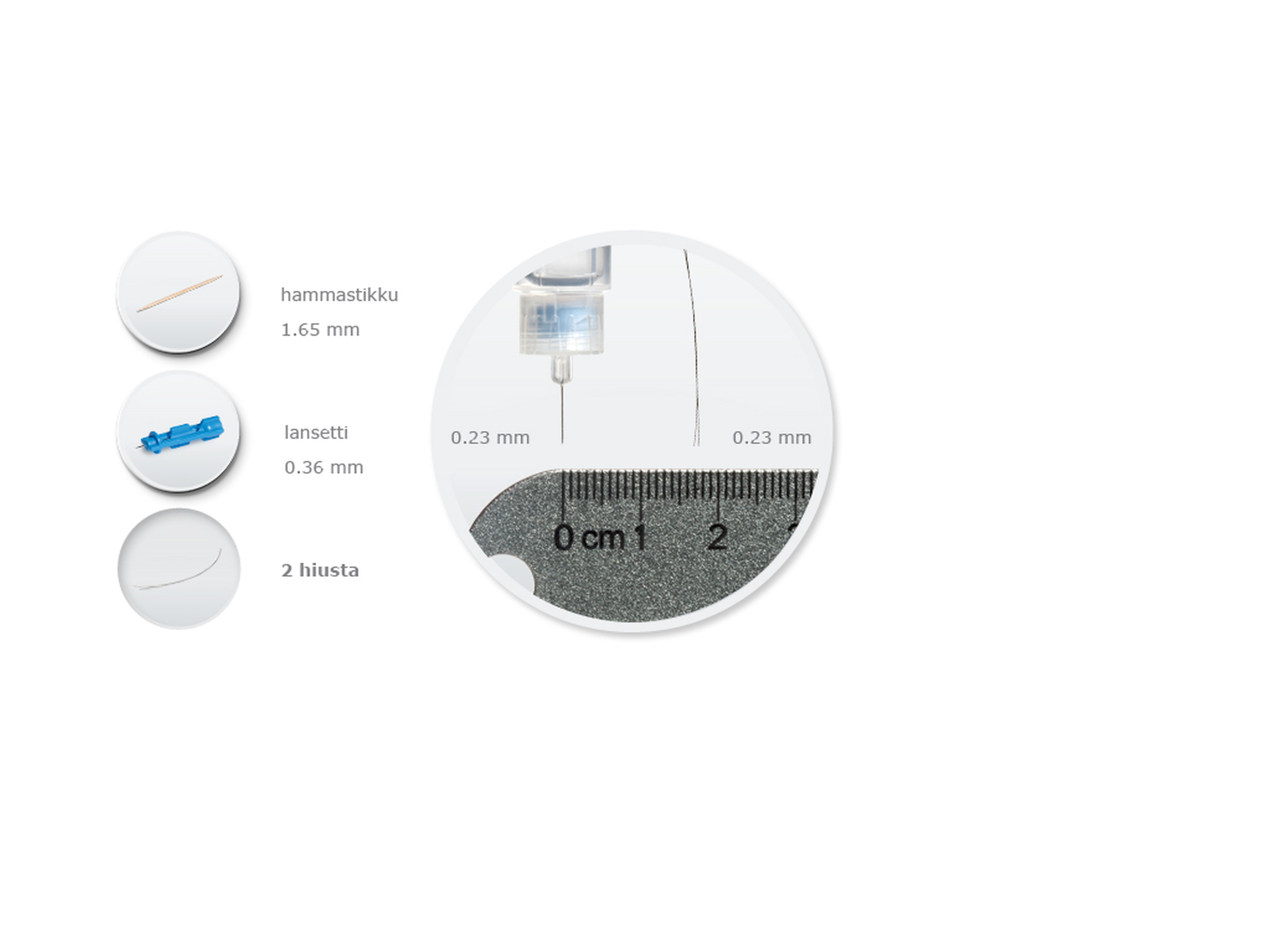 – Eräs potilas vertasi pistämisen aiheuttamaa tuntemusta pienemmäksi kuin hyttysenpisto. Pistäminen on lähes kivutonta, sillä käytettävät neulat ovat äärimmäisen ohuiksi hiottuja. Neula tulisi kuitenkin muistaa vaihtaa aina pistämisen jälkeen, sillä se tylsistyy helposti, Tero Saukkonen neuvoo.