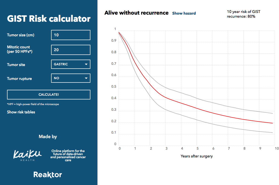 - GIST –riskilaskurin avulla potilaan ennuste saadaan arvioitua nopeasti ja luotettavasti. Ennusteen pohjalta kalliit ja haittavaikutuksiakin aiheuttavat täsmälääkehoidot voidaan kohdentaa niille potilaille, joiden syövän uusiutumisriski on korkea ja leikkaushoito ei ole riittävä. Lähtökohtaisesti laskurin ennustetta tarkastellaan yhdessä potilaan kanssa ja varmistetaan, että potilas ymmärtää mihin valittu hoito perustuu, kertoo Helsingin yliopiston onkologian professori ja HYKS syöpäkeskuksen tutkimusjohtaja Heikki Joensuu.