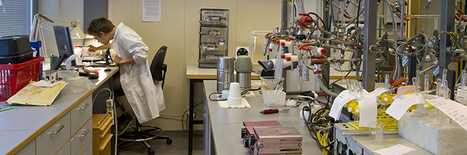 Luomuksen Ajoituslaboratorio hallinnoi määrityksiä ja hoitaa näytteiden käsittelyn. Itse radiohiilimääritys tehdään Fysiikan laitoksen kiihdytinmassaspektrometrilla (AMS).