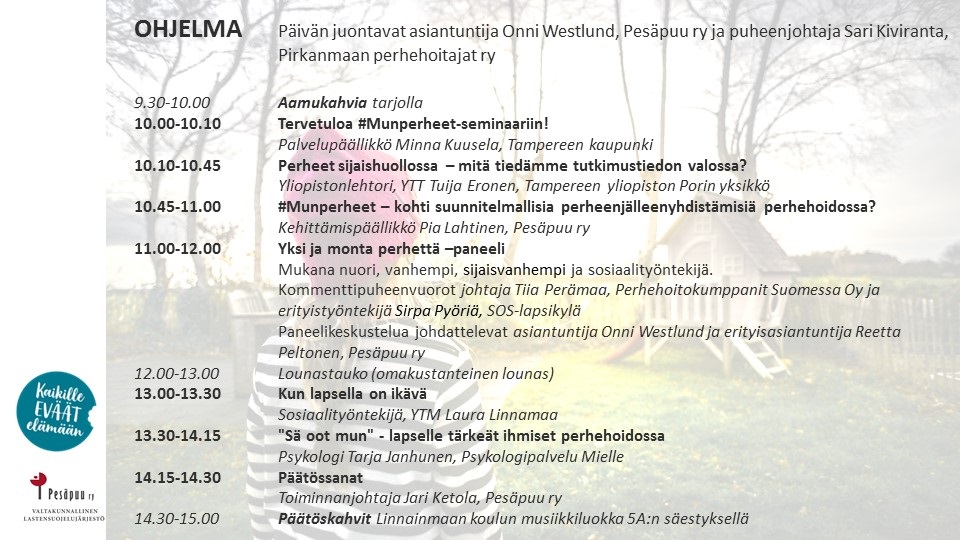 4.4.2018 12:01:06 EEST | Pesäpuu ry, valtakunnallinen lastensuojelujärjestö | Kutsu