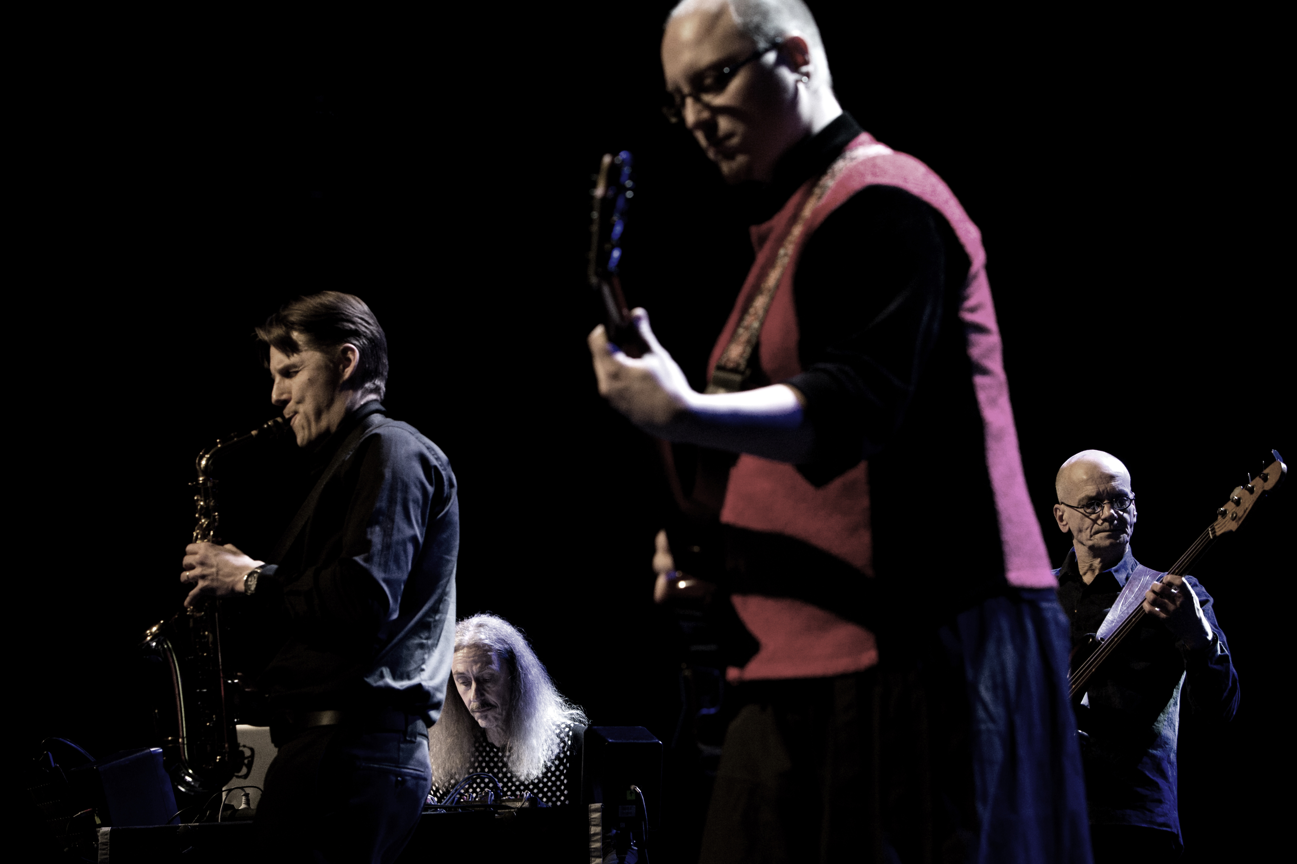 Popeda-ikoni, kitaristi Costello Hautamäki esiintyy Kangasala-talossa mies ja kitara -meiningillä perjantaina 10.5.2018. Lavalle isänsä kanssa nousee niin ikään kitaraa soittava poika Jimi Hautamäki.