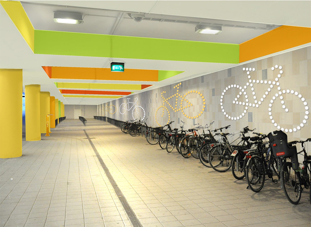 Sellon sisäänkäynnin edessä olevalle aukiolle tulee valotaideteos ja litteisiin pilareihin luodaan valolla kuvia. Kuvitus on asukkaiden ideoima ja pyrkii korostamaan leppävaaralaista identiteettiä. Kuvat on mahdollista vaihtaa uusiin aika ajoin. Pyöräväylän takaseinään maalataan värikkäät lepänlehtikuviot. Myös muita yksityiskohtia piristetään uusilla väreillä.