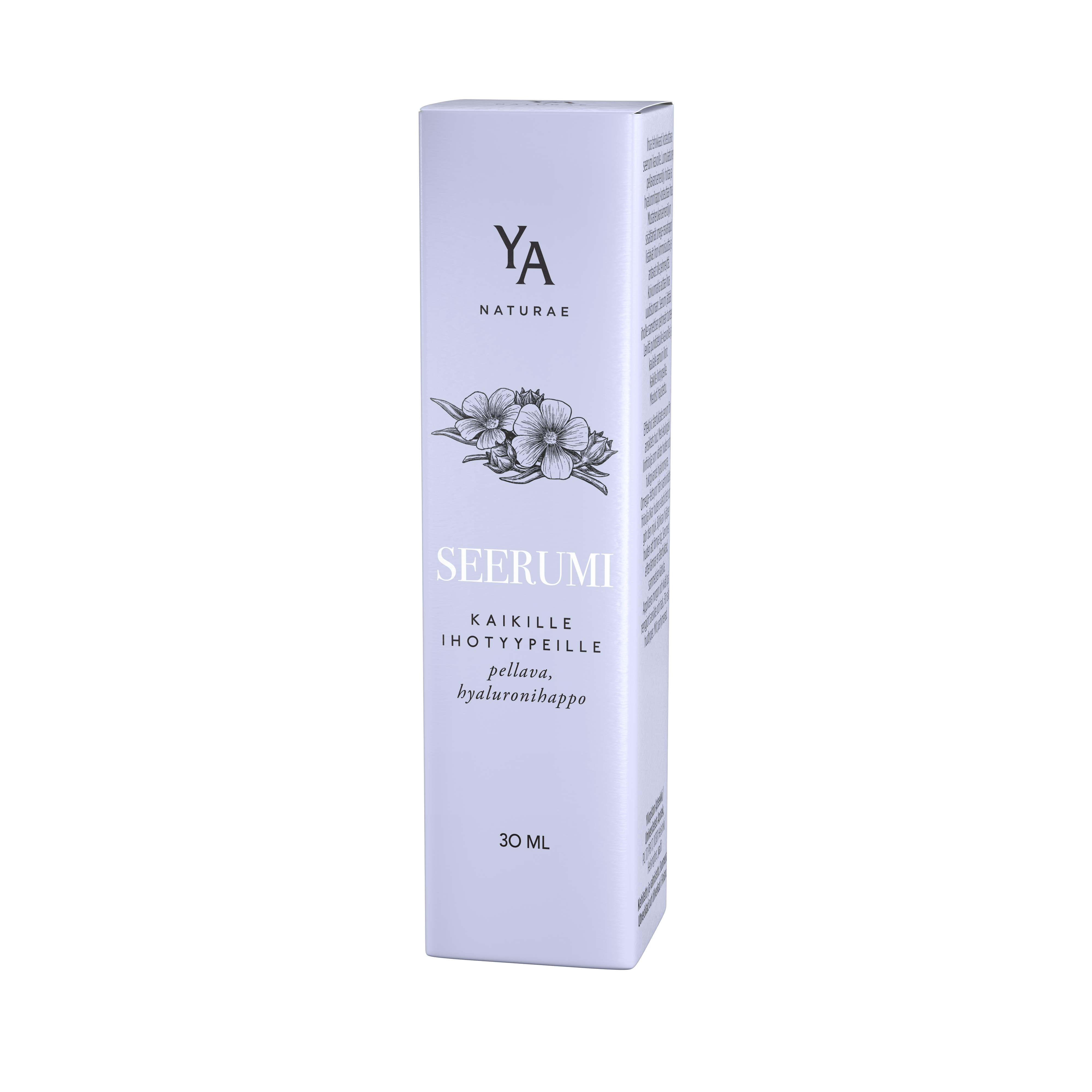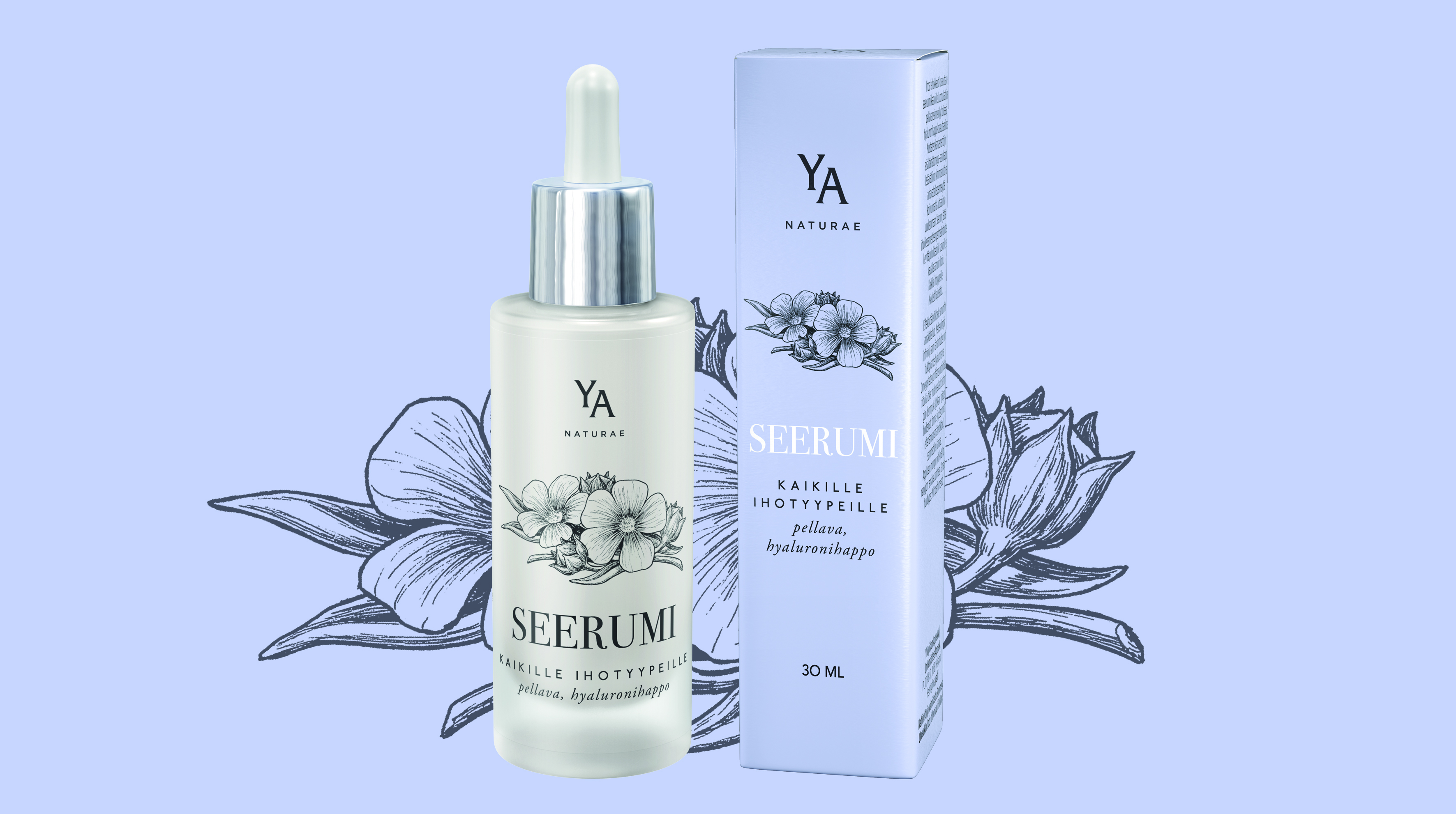 YA naturae -seerumissa on ihoa tehokkaasti kosteuttavia ja hoitavia ainesosia. Koko luonnonkosmetiikkasarja perustuu ihoa uudistavaan koivunmahlauutteeseen, joka on seerumissa saanut parikseen ihoa hellästi hoitavan pellavansiemenöljyn. Lisäksi tehoseerumi sisältää kosteuttavaa hyaluronihappoa sekä kimmoisuutta ja pehmeyttä lisäävää mustaherukansiemenöljyä. Tuote sopii kaikille ihotyypeille ja siinä on mieto kukkaistuoksu.