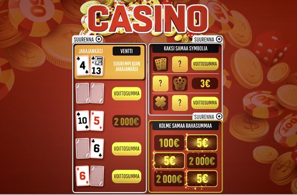 - Casinossa on kolme hintaa ja kolme päävoittoa. Eurolla voi voittaa 20 000 euroa, kolmen euron arvalla 150 000 euroa ja pirkkalalaisvoittajan valitsemalla kuuden euron arvalla 300 000 euroa. Kaikissa nettiarvoissa on porrastettu hinta ja päävoitto, kertoo digitaalisten pelien tuotepäällikkö Tuomas Honkonen.