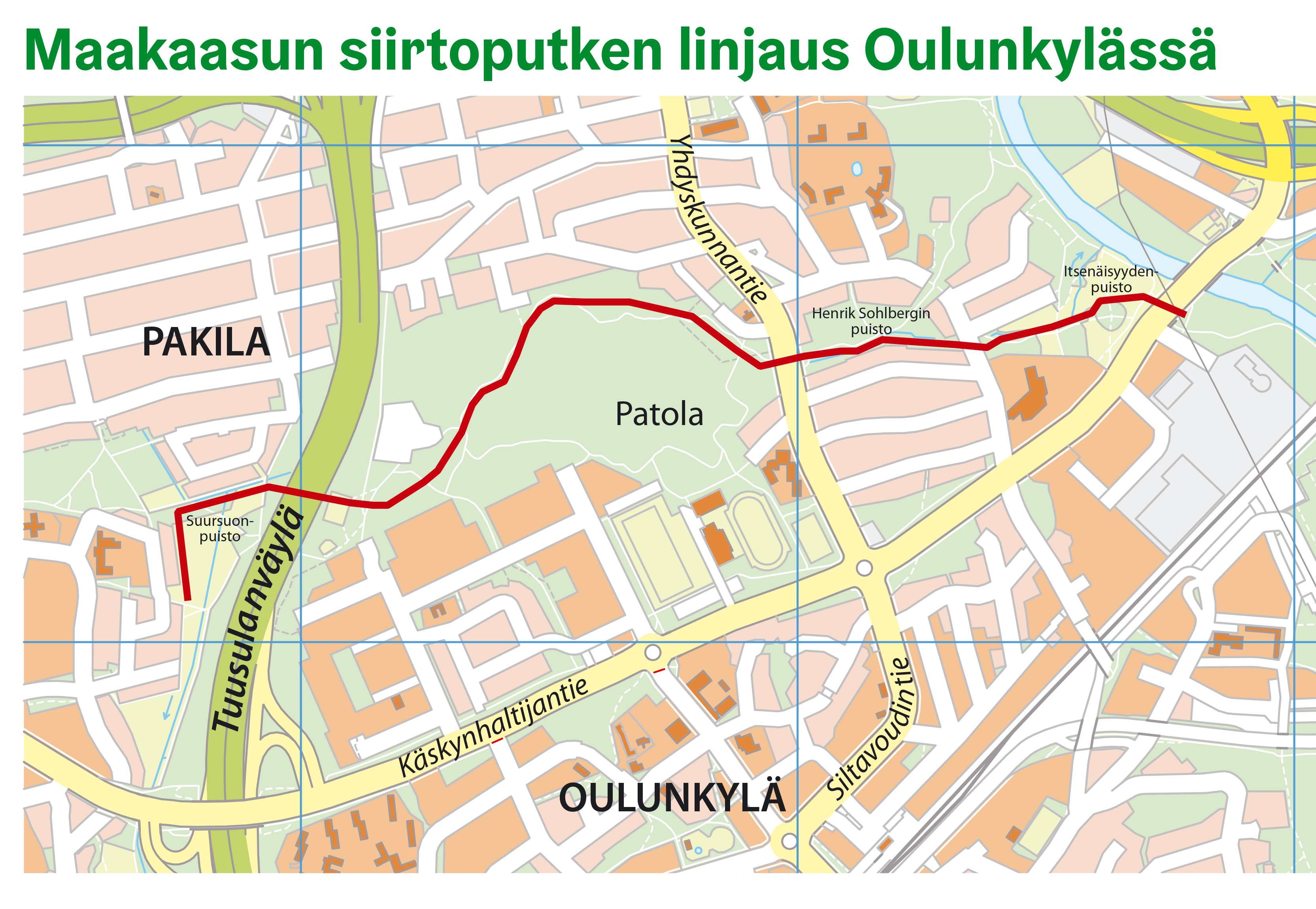 Putki kulkee Henrik Sohlbergin puiston ja Itsenäisyydenpuiston läpi