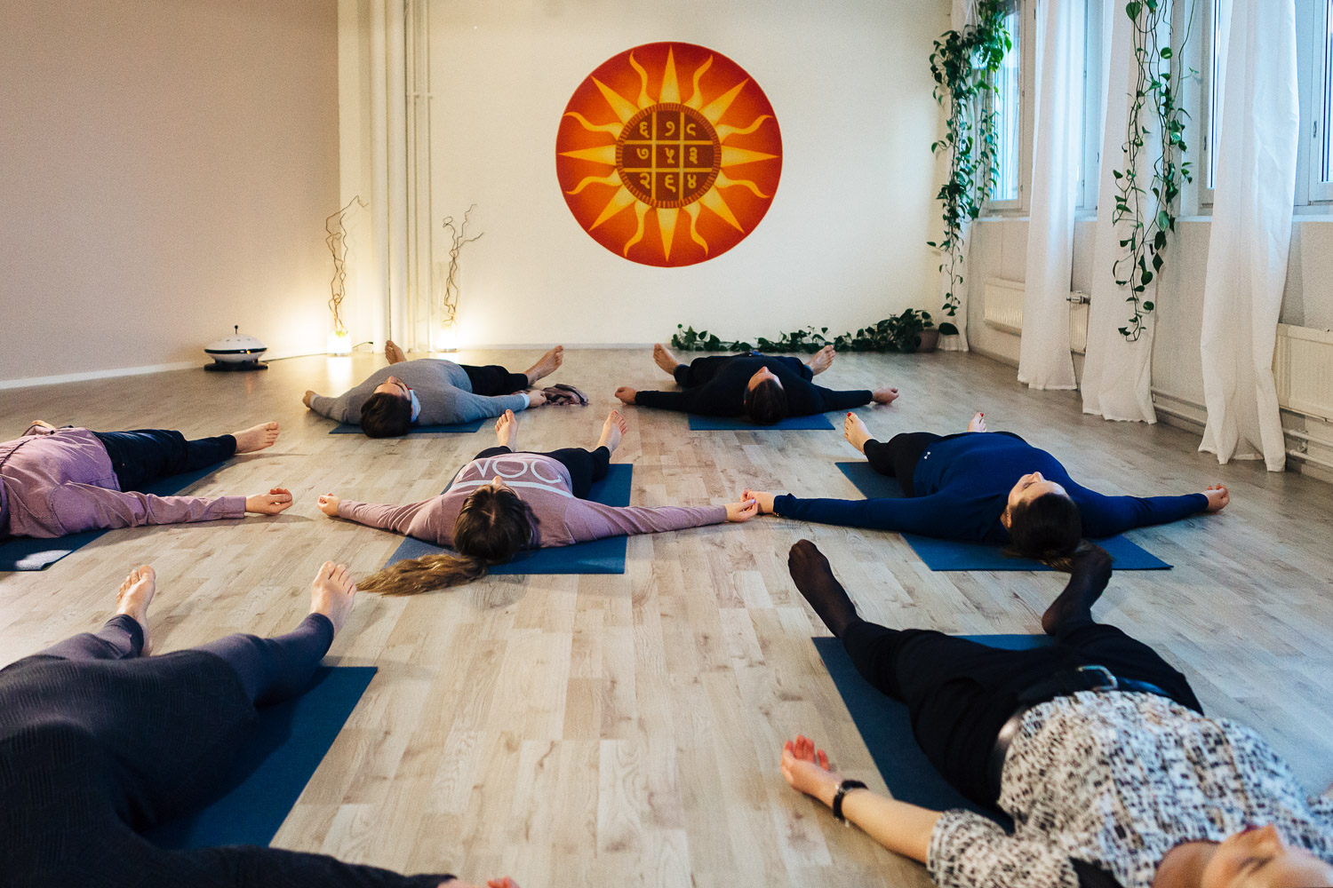 Yhteen suureen tilaan mahtuu maksimissaan 50 henkeä. Esimerkiksi tykypäivänä on mahdollista vuokrata myös lisätilaa vaikkapa ryhmätöitä varten, sillä joogasaleja on useita.