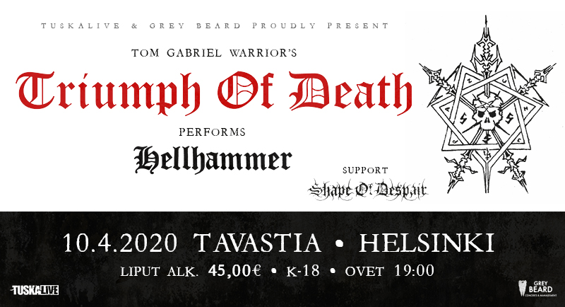 Hellhammer-materiaalia esittävä Triumph of Death Tavastialle 10.4.2020