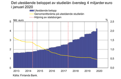 Det utestående beloppet av studielån översteg 4 miljarder euro i januari 2020
