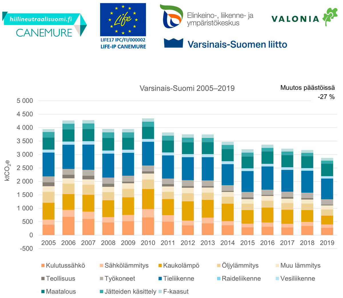 - Lounais-Suomen ilmastopäästöt: päästöjen jakauma 2019 ja päästökehitys 2005–2019 (ymparistonyt.fi/lounais-suomen-ilmastopäästöt)