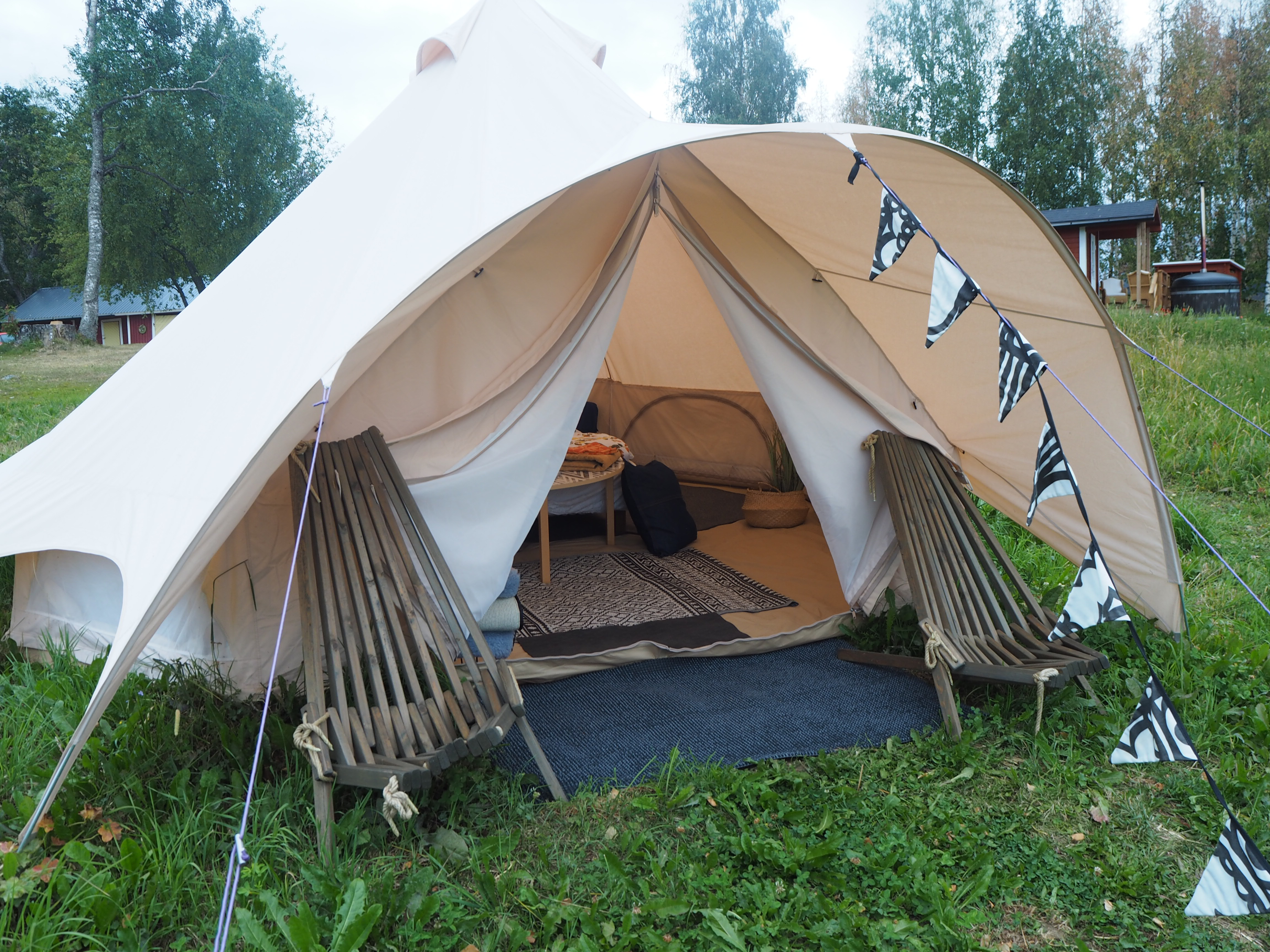 - Kun kesä syvenee ja kääntyy syksyksi, luonto muuttuu väkevämmäksi. Sen aistii teltassa erityisen hyvin. Tuulet ja eri säiden tuoksut ovat läsnä ja ympärillä. Kohta tulee elokuun kuutamoyöt ja sen jälkeen ruskan hehkut ja raikas syysilma tähtitaivaineen. Hyvin moni arvostaa sitä, että on turvallinen pihapiiri lähellä, mutta aito luonto läsnä.