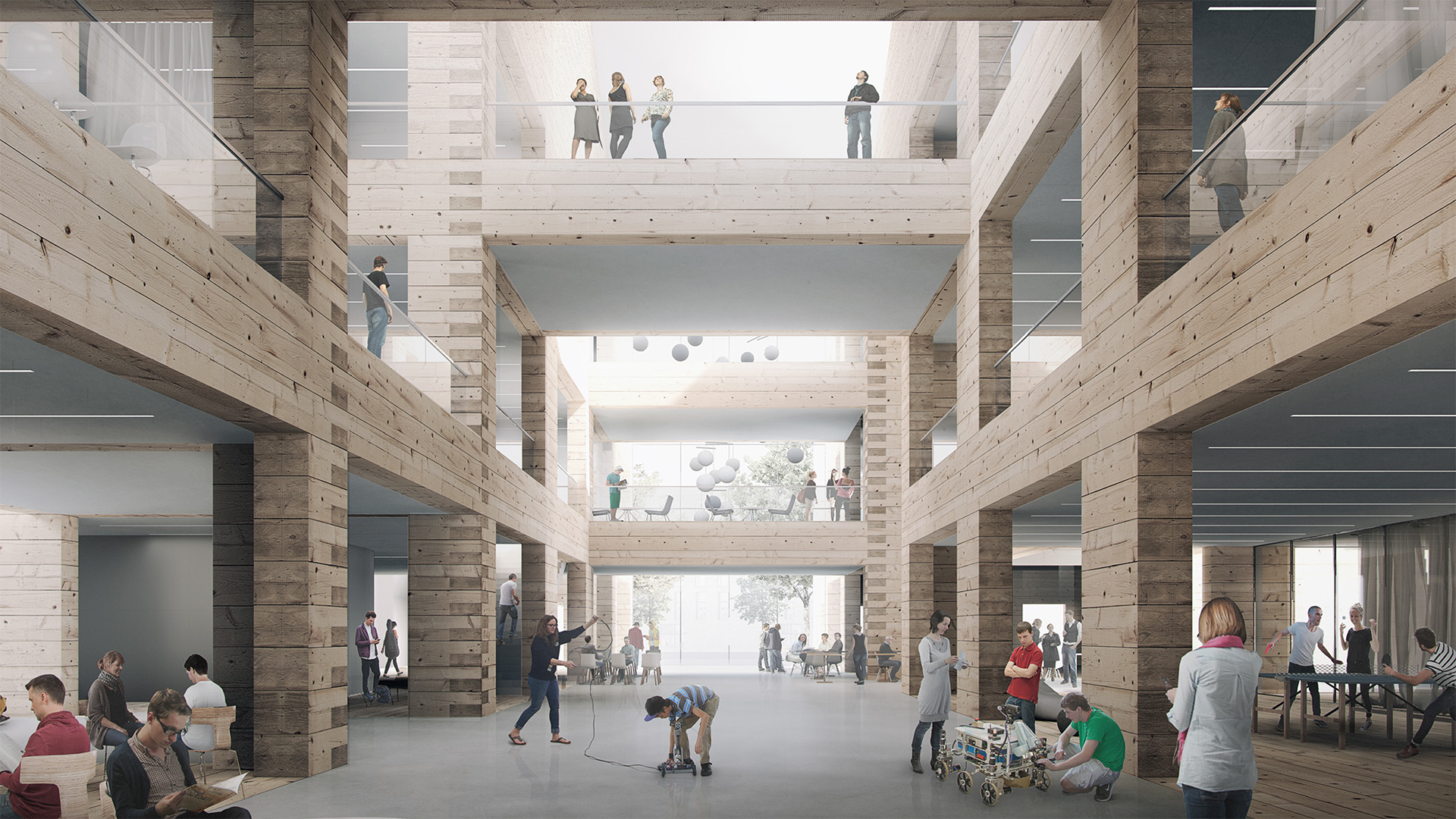 Suuri puurakenteinen ja monikäyttöinen rakennus on vaativa ääniympäristö. Hyvä ääneneristävyys eri tilojen välillä on käyttömukavuuden kannalta välttämätön.