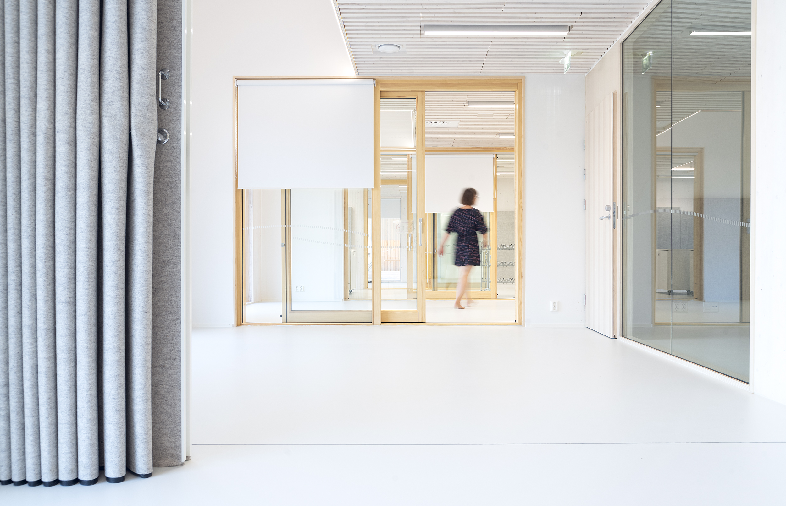 Helsingin kaupungin rakennuttama Hopealaakson päiväkoti koostuu seitsemästä toiminta-alueesta kahdessa kerroksessa. Käytäviä ei ole, ja tiloja jakavat muun muassa avattavat, suuret lasiliukuovet. Ne mahdollistavat tilojen rauhallisuuden ja yhdistämisen toisiinsa.