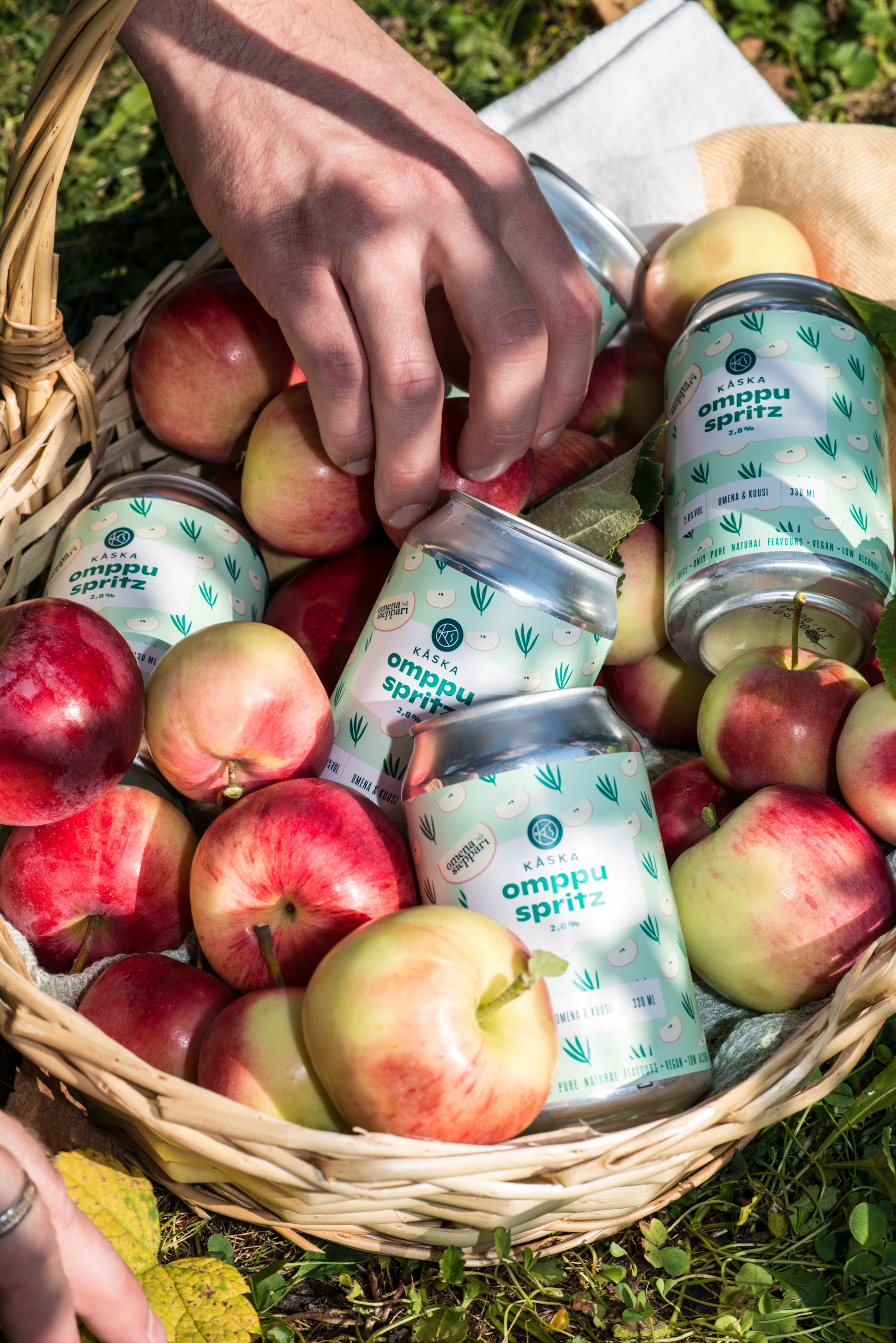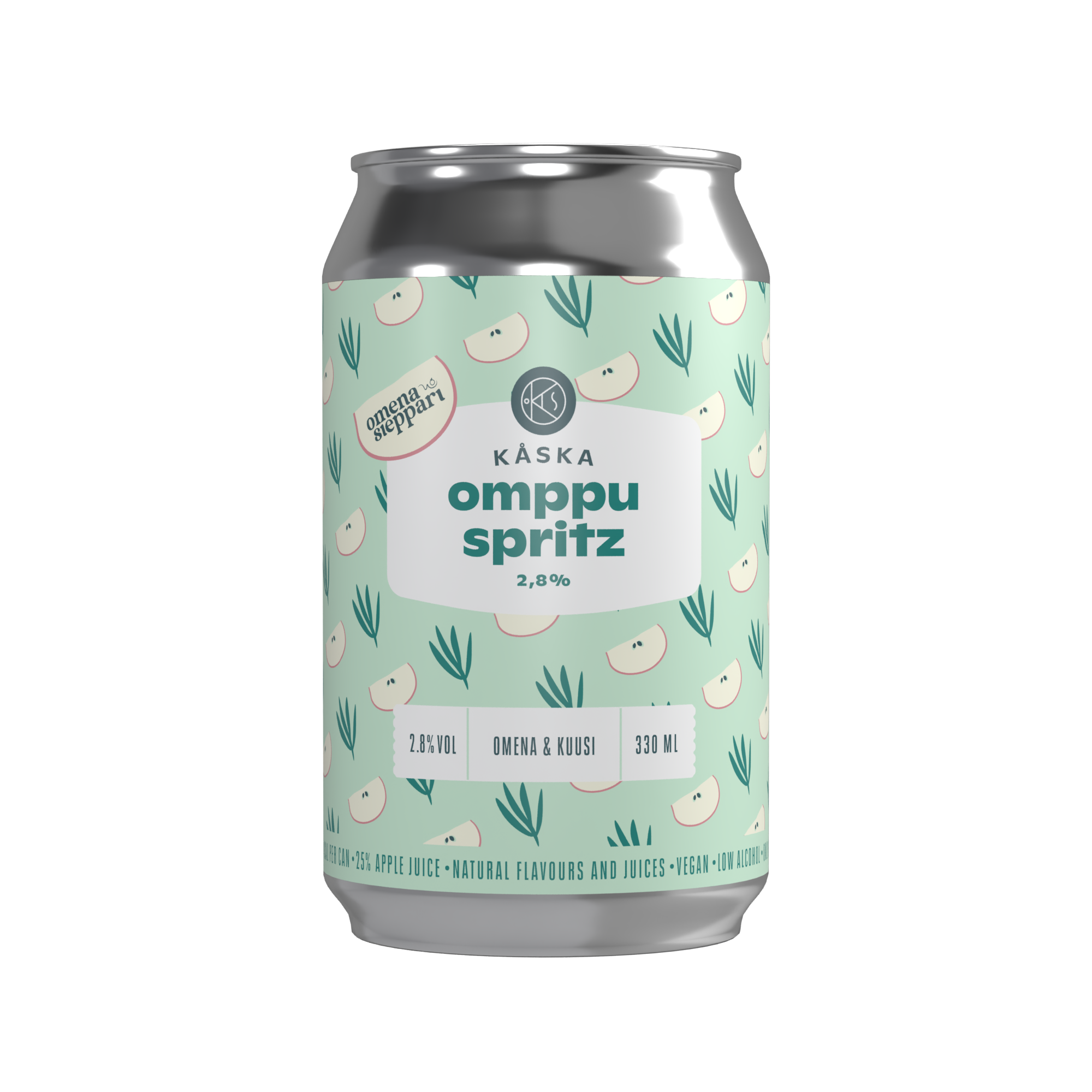 Kirpakka ja raikas puutarhaomenan ja kuusenkerkän makuinen kupliva spritz, jonka valmistuksessa on käytetty suomalaisten pihojen ja puutarhojen hävikkiomenoita sekä kotimaista Kåskan valmistamaa kuusenkerkkätislettä. Omenat on kerätty ja puristettu mehuksi työllistäen erityisen tuen tarpeessa olevia henkilöitä kunnon palkkatöihin. Sisältää 25% omenamehua ja 100% luonnon puhtaita makuja. Ei lisättyjä aromeja tai väriaineita. Vegaaninen ja gluteeniton.