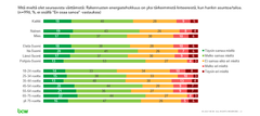 Alle 45-vuotiaat vastaajat pitävät energiatehokkuutta vähemmän tärkeänä kriteerinä kuin vanhemmat ikäluokat. Vastaavasti 65–75-vuotiaista jopa 66 prosenttia pitää energiatehokkuutta tärkeänä.
