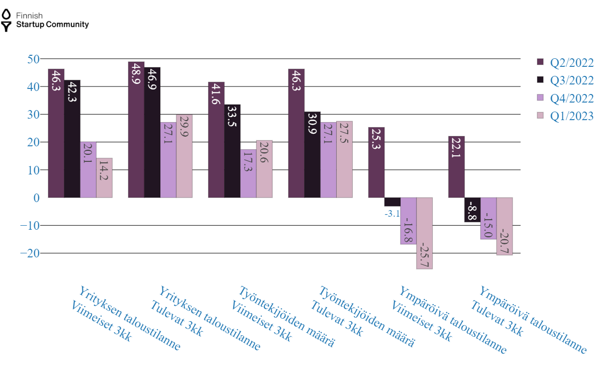Suomen startup-yhteisön barometri Q1/2023: Luottamus ympäröivään talouteen jatkaa luisuaan, mutta henkilöstön määrän sopeutustarpeet ovat jo takanapäin