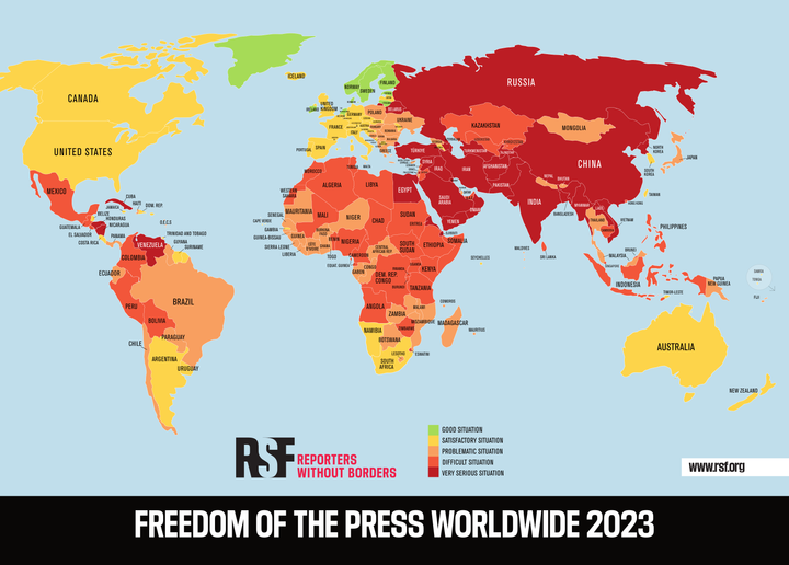 Toimittajat ilman rajoja -järjestön World Press Freedom Index mittaa vuosittain lehdistönvapautta 180 eri maassa ja alueella.