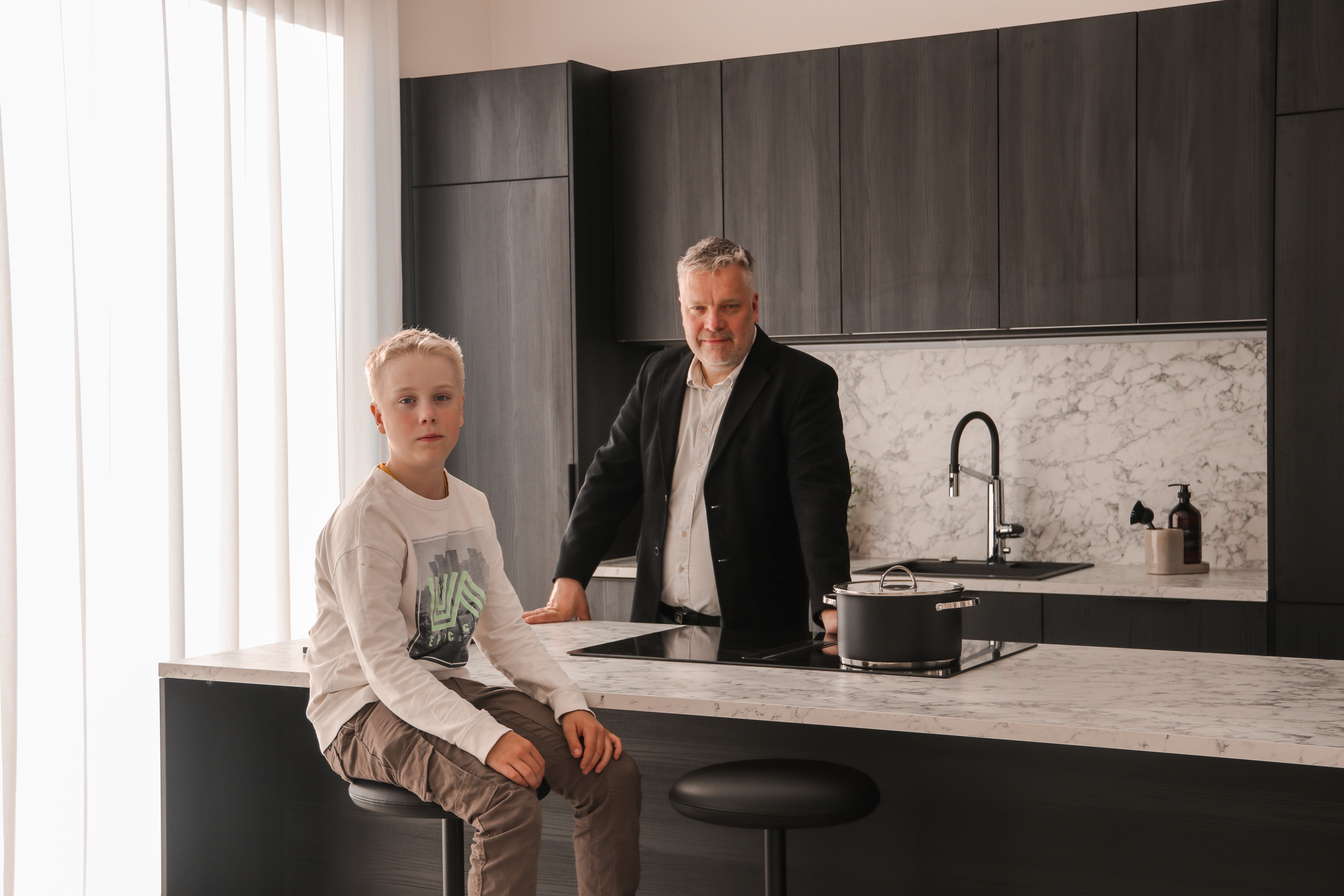 Ken taas toivoo kompaktimpaa ja helppohoitoisempaa kotia nyt, kun isommat lapset ovat jo lentäneet pesästä ja tilaa tarvitaan enää itselle ja 11-vuotiaalle Albin-pojalle. Ken on pohtinut myös uuden kodin muunneltavuutta ja jälleenmyyntiarvoa tulevien elämäntilanteiden varalta.