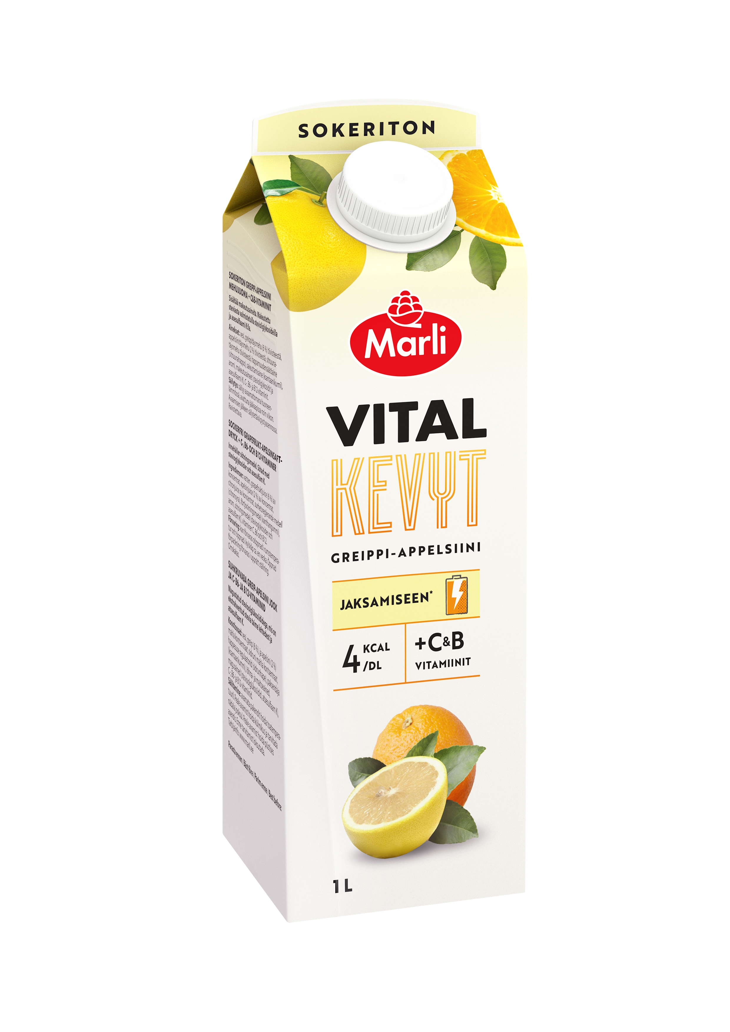 Kuluttajat ovat vähentäneet huomattavasti sokerin kulutusta ruokavaliossaan ja tämän myötä olemme kehittäneet neljä uutta Marli Vital KEVYT -mehujuomaa. Neljässä uudessa sokerittomassa makuvaihtoehdossa on vain 2–4 kilokaloria desilitrassa mehujuomaa ja niitä voi nauttia hyvällä omalla tunnolla. Makuina Marli Vitalin suosikkimaut Appelsiini-mango ja Karpalo-rypäle sekä kokonaan uudet raikkaat Sitrus-mustikka ja Greippi-appelsiini.