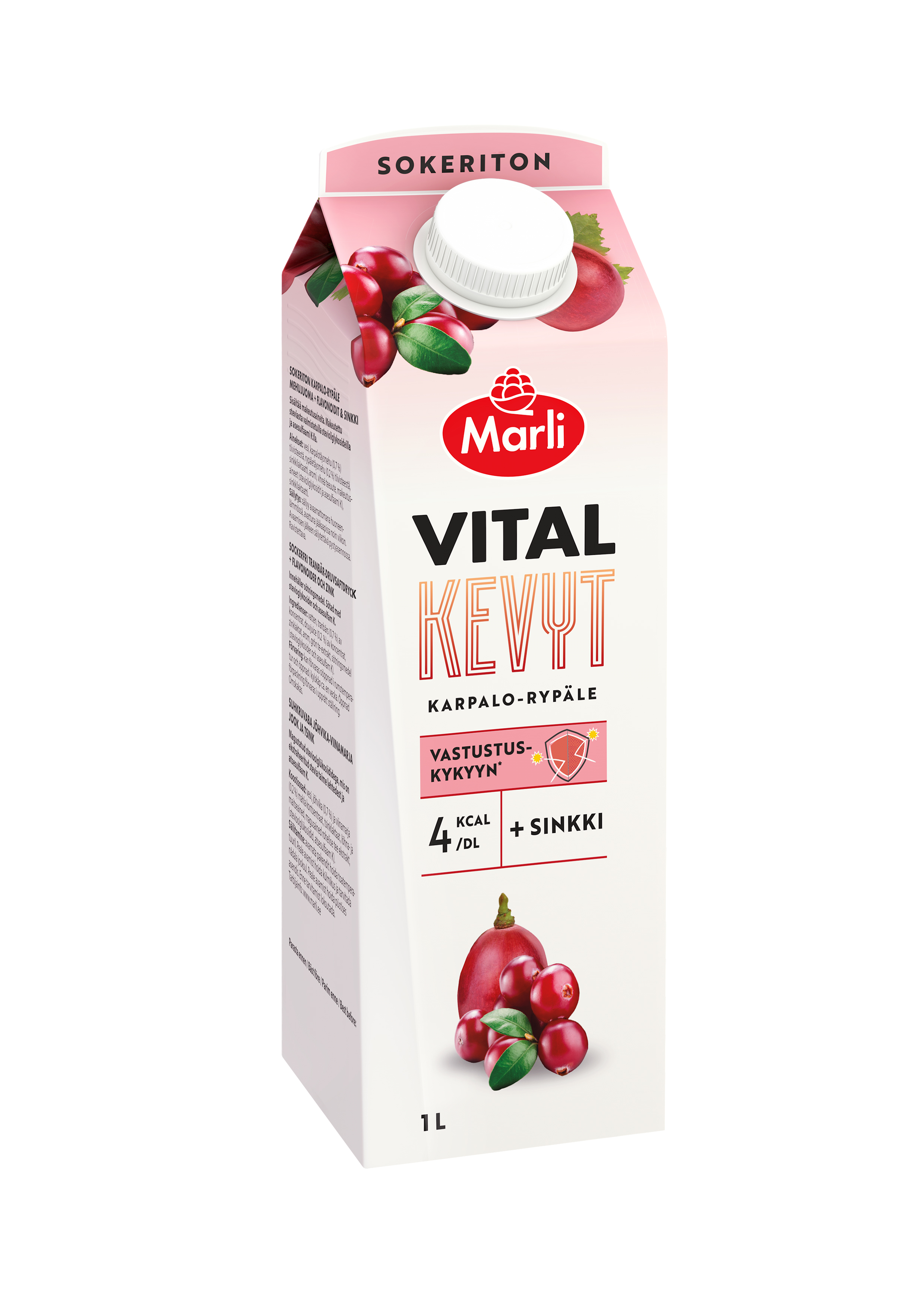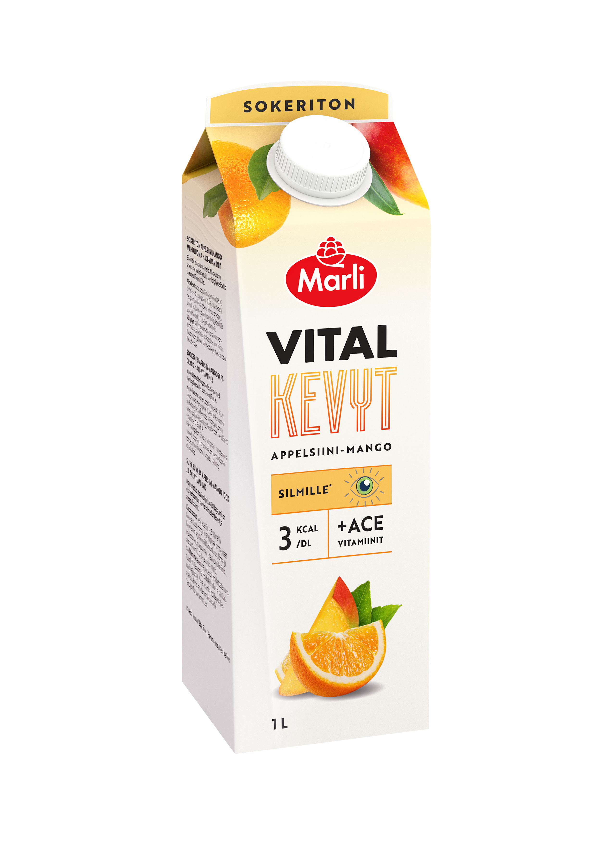 Marli Vital Kevyt -mehujuomat antavat helppoa hyvinvointia terveyttä edistävillä ainesosillaan. Reseptit sisältävät mm. A-, B-, C- ja E-vitamiineja sekä sinkkiä. Vähäkaloriset uutuudet pakataan raikkaan vaaleaan, hiilineutraaliin ja helposti kierrätettävään kartonkipakkaukseen ja ne löytyvät kaupan mehuhyllyistä kautta maan.