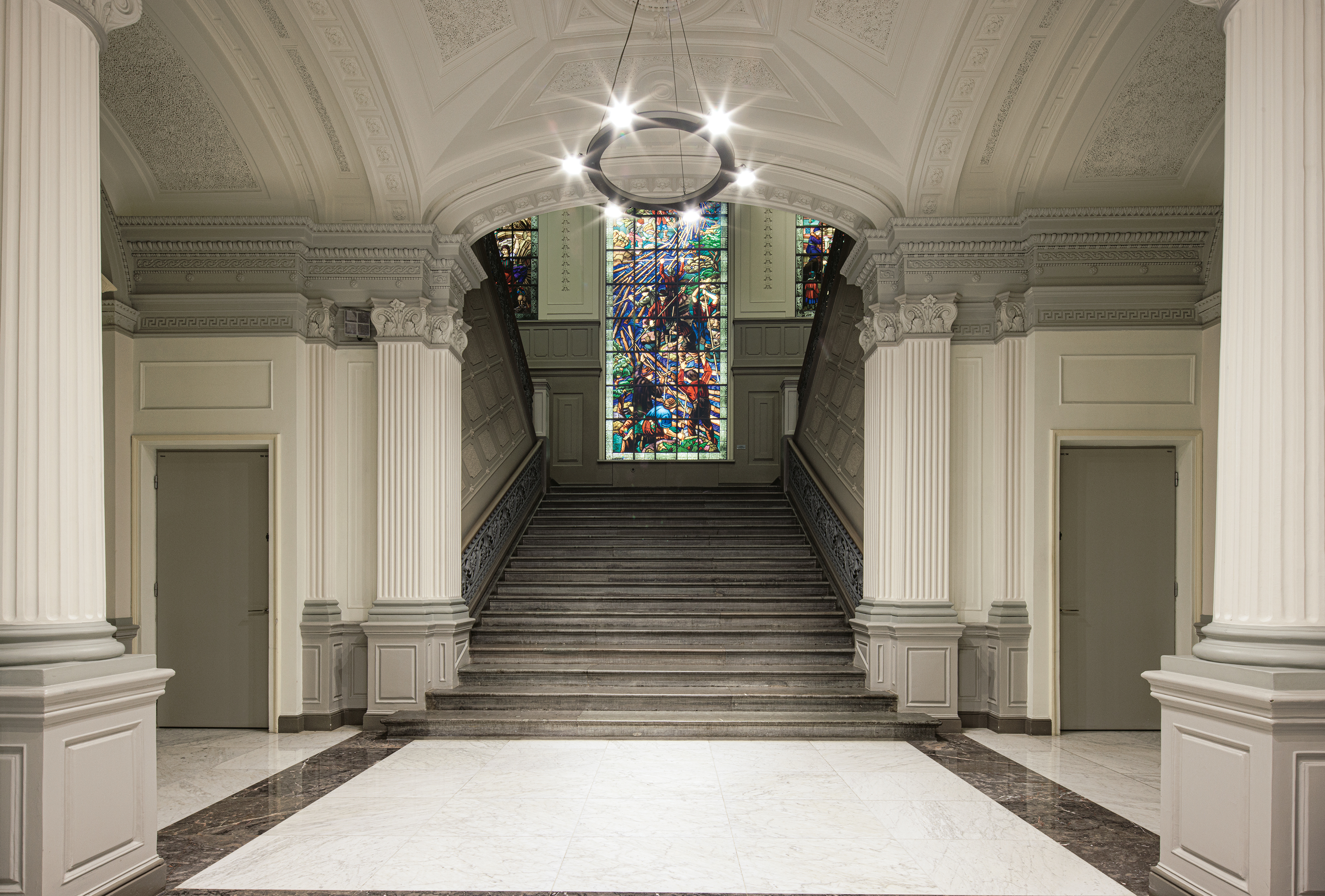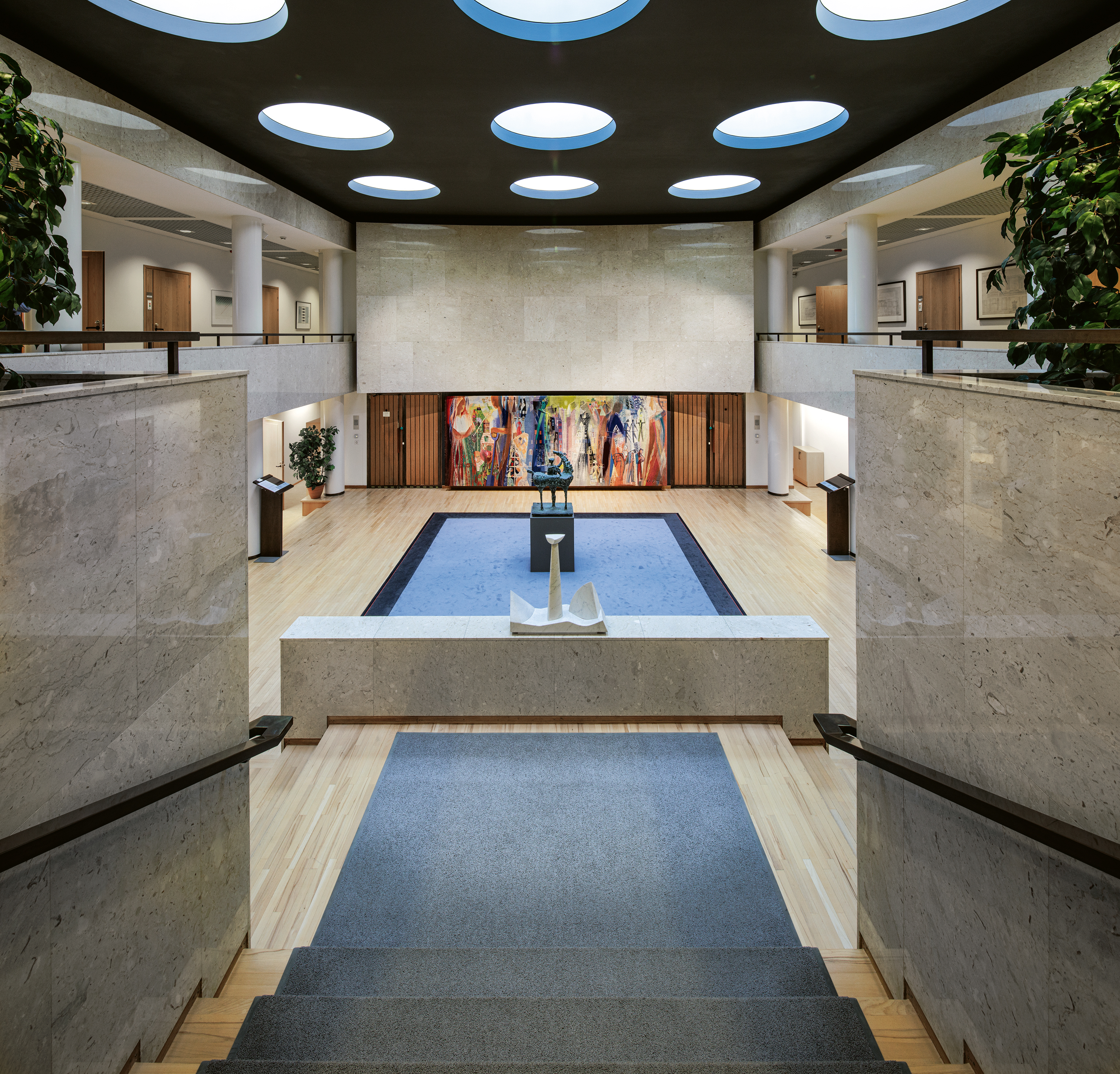 Taideteosten ohella kirja luo katsauksen pankin päärakennuksen värikkääseen historiaan ja arkkitehtoniseen merkitykseen. Renessanssiajasta muistuttava vaikuttava päärakennus Snellmaninaukiolla valmistui 140 vuotta sitten vuonna 1883. Se on ensimmäinen oma rakennus, joka maailman neljänneksi vanhimmalle keskuspankille suunniteltiin. Poliittisen merkityksen rakennuksen sijainnille tuo sen sijoittelu vastapäätä Säätytaloa. Monumentaalista pääporrasta koristavat Juho Rissasen (1873–1950) ikoniset lasimaalaukset ja Lennart Segerstrålen (1892–1975) surumieliset Finlandia-freskot. Ne muistuttavat siitä, että Suomen Pankki on ollut mukana todistamassa yhteiskuntamme eri kehitysvaiheita.