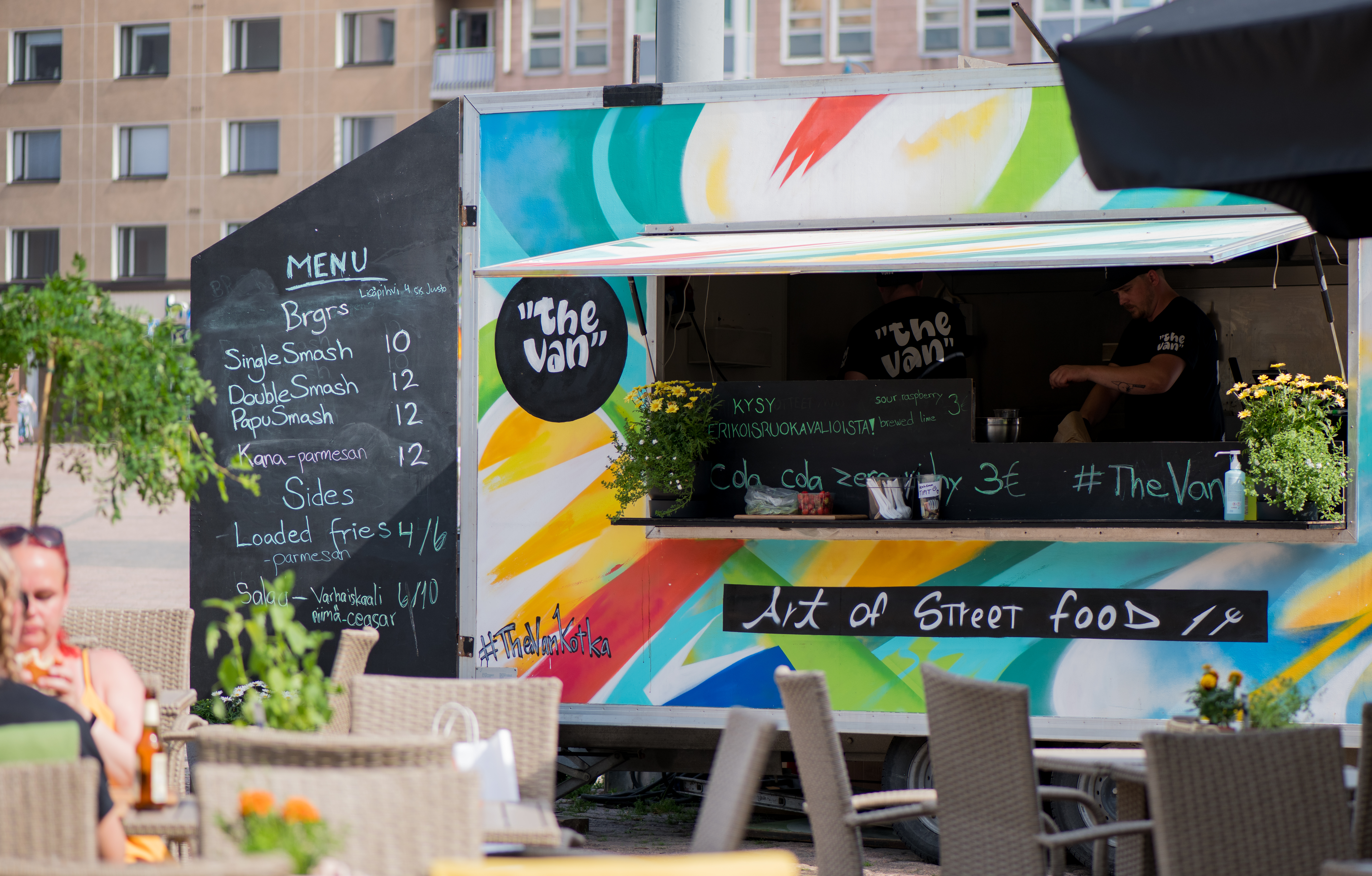 ”Olen ylpeä siitä, että onnistuimme haastavassa tilanteessa löytämään keinon paitsi selviytyä itse, myös tarjoamaan yhteisöllemme Kotkassa iloa ja makua. Värikärrimme otettiin hienosti vastaan ja saimme nopeasti uuden, koulutuksiamme vastaavan päivätyön. Olemme erikoistuneet prässättyyn smash burgeriin ja pidämme täytteet hyvin yksinkertaisena ilman pankkiholvissa säilytettäviä kastikereseptejä. Parhaiten meidät tunnetaan tuplajuustoburgerista, jossa on dijonnaise-kastiketta ja pikkelöityä punasipulia. Ei mitään ylimääräistä, mutta jokaisen komponentin pitää olla laadukas”, kertoo Street Food Factoryn ja The Vanin keittiömestari-yrittäjä Juuso Olli ja jatkaa: