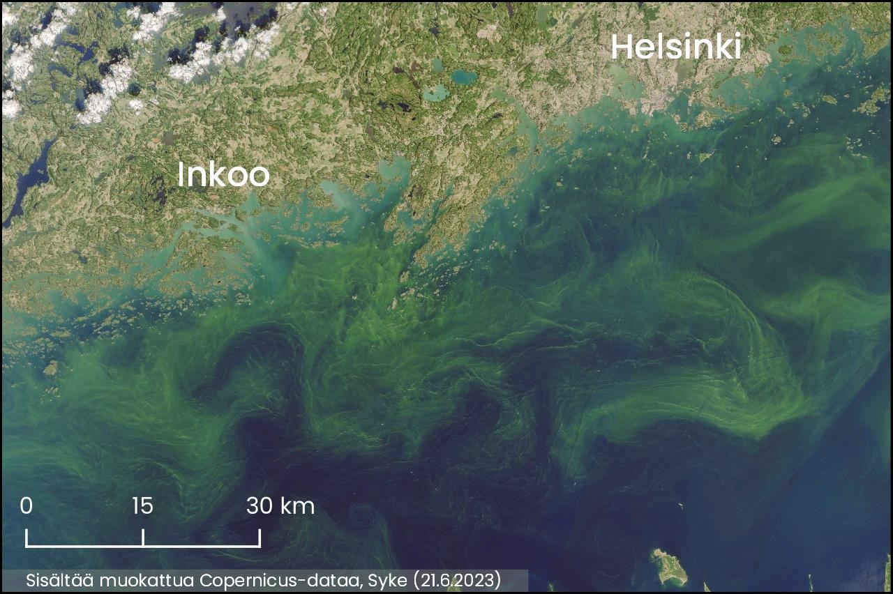 Sinilevän määrä on lisääntynyt selvästi Suomenlahdella sekä Itämeren pääaltaalla. Suomen avomerialueilla sinilevää on havaittu laajalti satelliittikuvista koko Suomenlahden alueella. Suomenlahden keskivaiheilla tyynet olosuhteet ovat kasanneet levää pintalautoiksi. Pintaleväkukinnan painopiste on Porkkalanniemen ja Helsingin eteläpuolisessa ulkosaaristossa sekä avomerellä. Selkämerellä tilanne on vielä ajankohtaan nähden tyypillisesti rauhallinen.