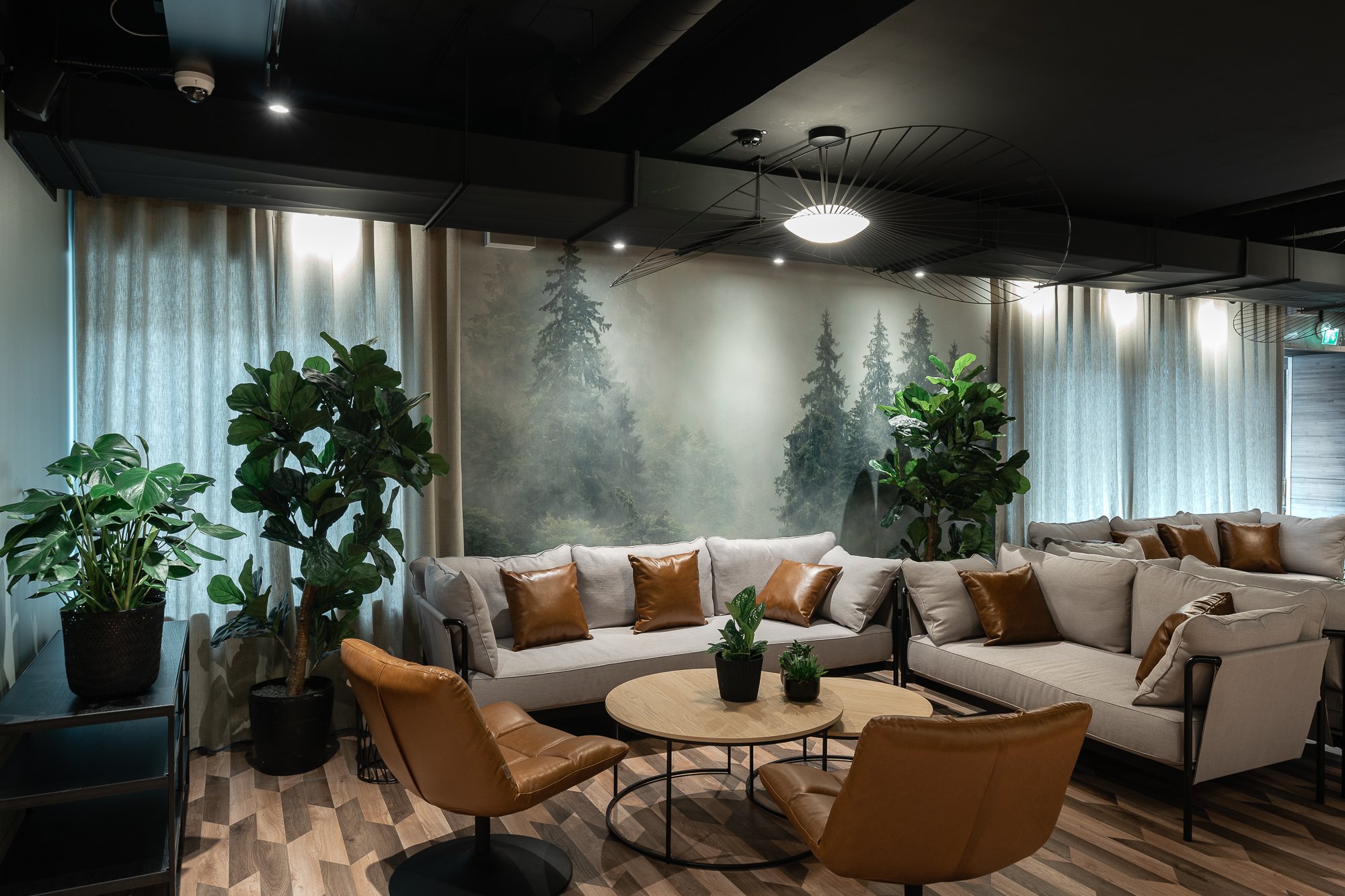 ”Halusin luoda Original Sokos Hotel Koljonvirrasta moniaistisen kokonaisuuden, jossa luonnon hyvää tekevä vaikutus tuodaan biofiilisten suunnitteluperiaatteiden mukaisesti sisätiloihin. Hyödynsimme mahdollisimman paljon erilaisia luonnosta muistuttavia elementtejä, kuten vihersisustusta, puukalusteita, utuisten metsien tunnelmaa kuvaavaa tapettia ja luonnollisia värisävyjä, kuten tunturipajua. Tilojen on myös kestettävä aikaa ja siksi suunnittelussa käytettiin vain aitoja, kauniisti vanhenevia materiaaleja”, sisustussuunnittelija Jaana Ekman kertoo.