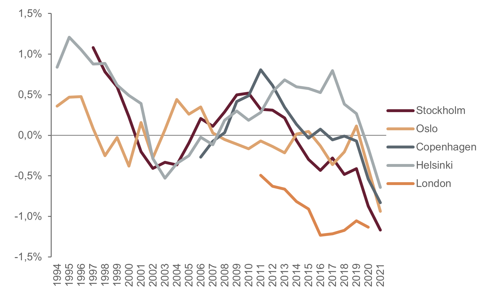 Vuosisatoja pitkä kaupungistumisen trendi on saanut vastavoiman. Pohjois-Euroopan suurkaupunkien asukkaista jo 29 % haaveilee elämästä maalla nykyistä suuremmassa kodissa.