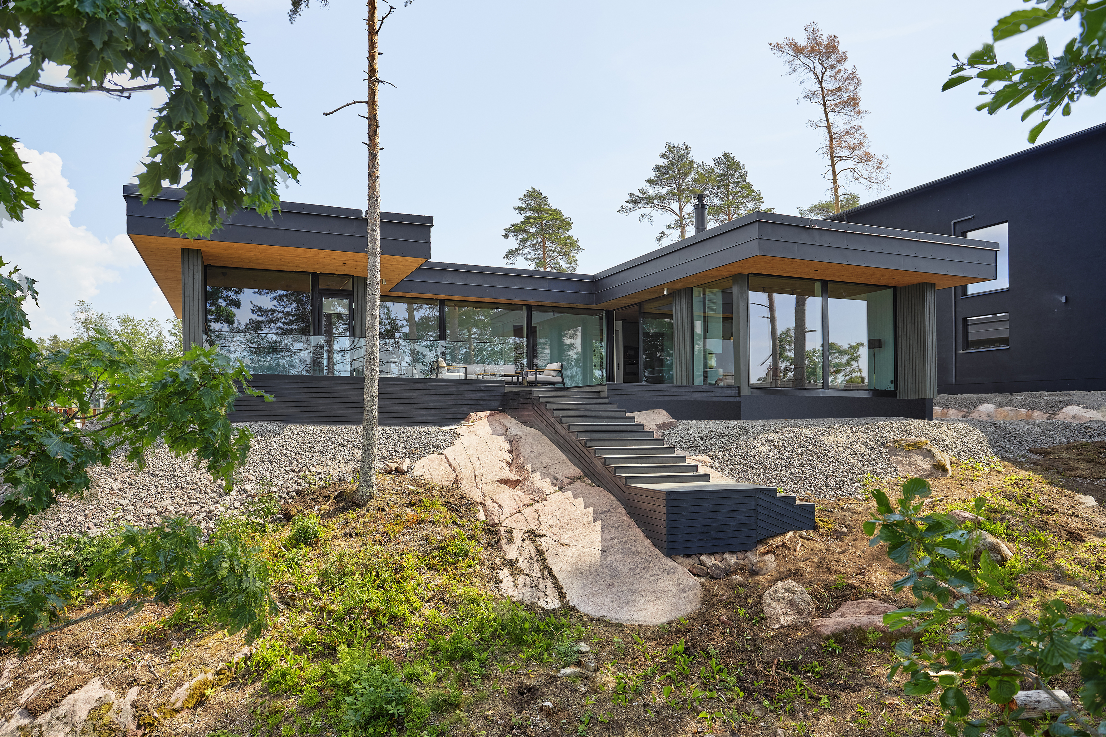 ”Havsstrandin arvoissa näkyy ekologisuus, ja tekniset ratkaisut ovat fiksuja”, Lintunen kiittelee. ”Esimerkkeinä korkeat ovet ja suurten ikkunoiden sijoittelut. Vaikka merinäkymät ja luonnonvalo tulvivat talon sisään, yksityisyys on säilynyt”.