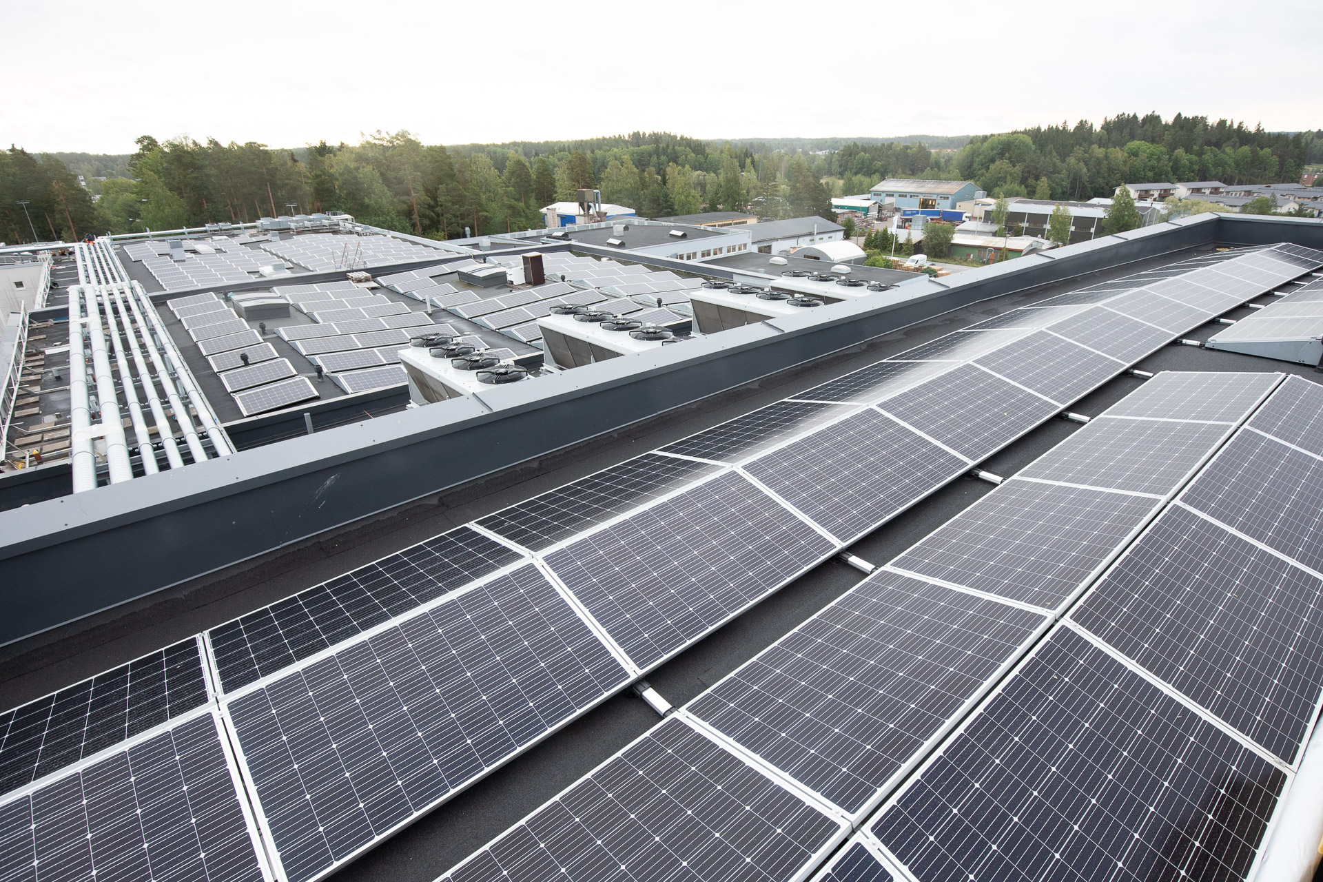 Myös Hesburgerin Kaarinan keskusvarasto ja tehdas on aurinkopaneelien peitossa. Suomen mittakaavassa suuri aurinkosähkövoimala imee auringosta energiaa 860 paneelin voimalla. Voimalan tuotto on 258 kWp.