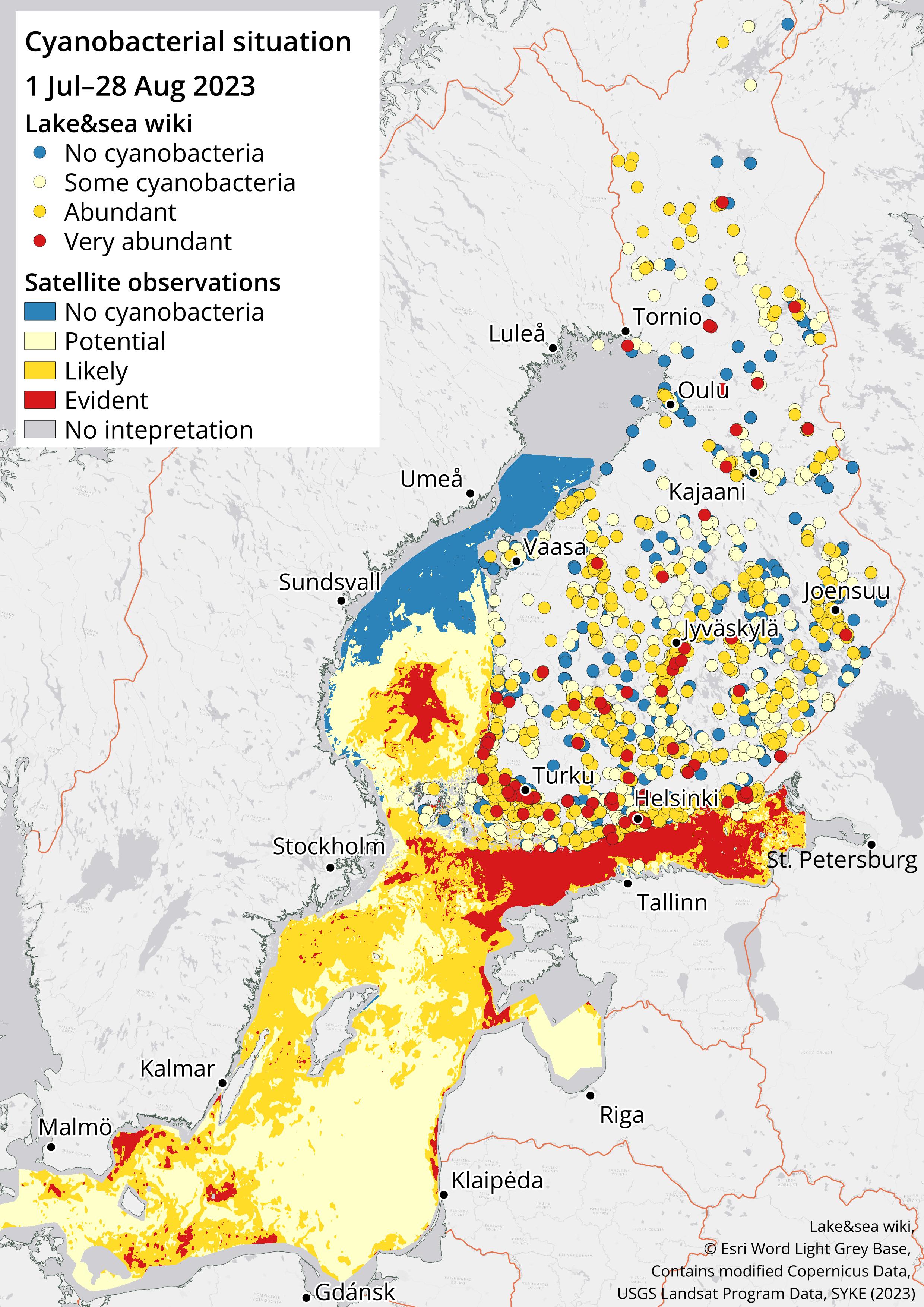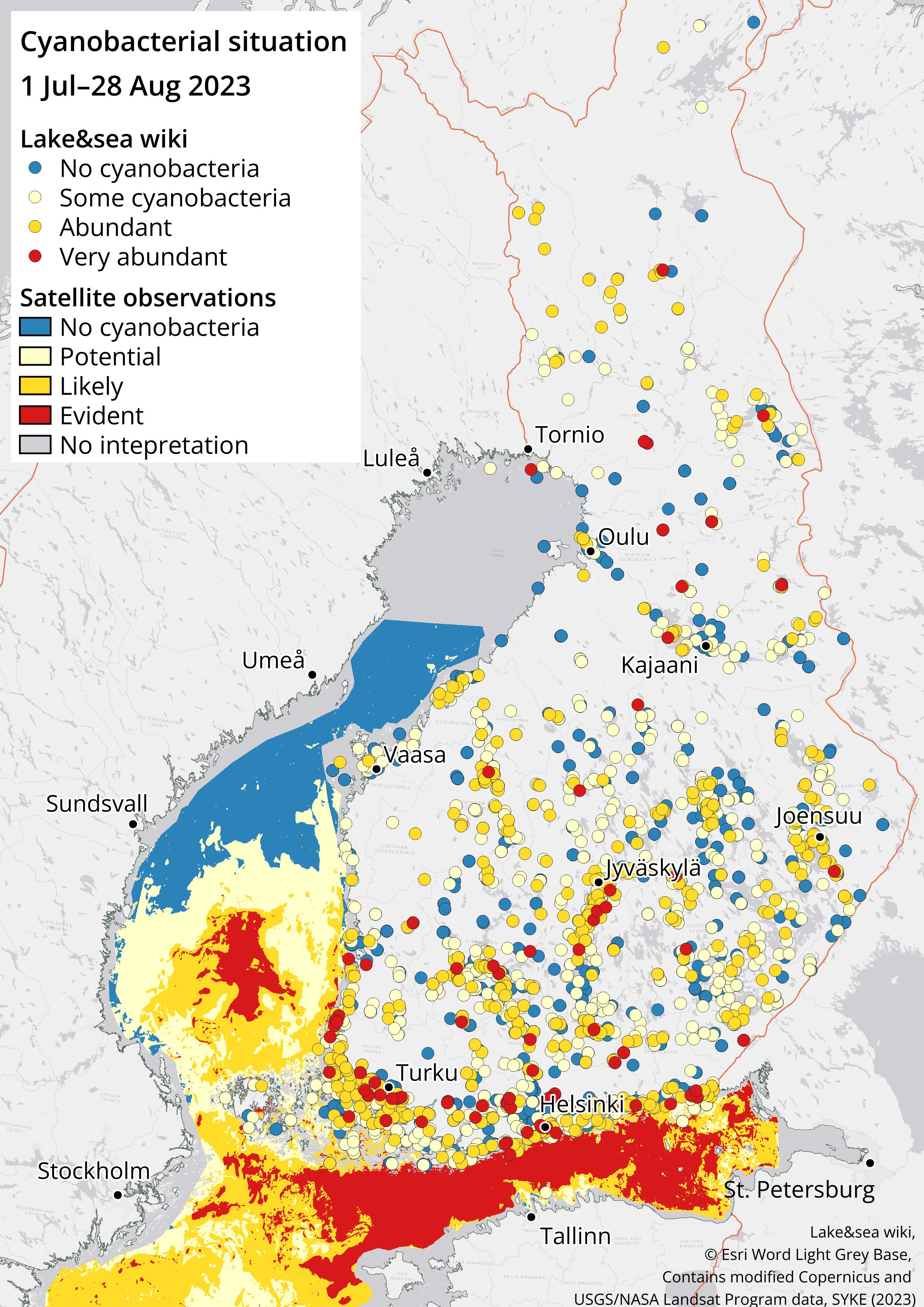 The Finnish Environment Institute SYKE monitors the occurrence of blue-green algae as part of the monitoring of the state of the environment and publishes a weekly overview of the blue-green algae situation in inland waters and in sea areas close to Finland. Monitoring of blue-green algae will continue until the end of September, but the weekly national reports end at the end of August.