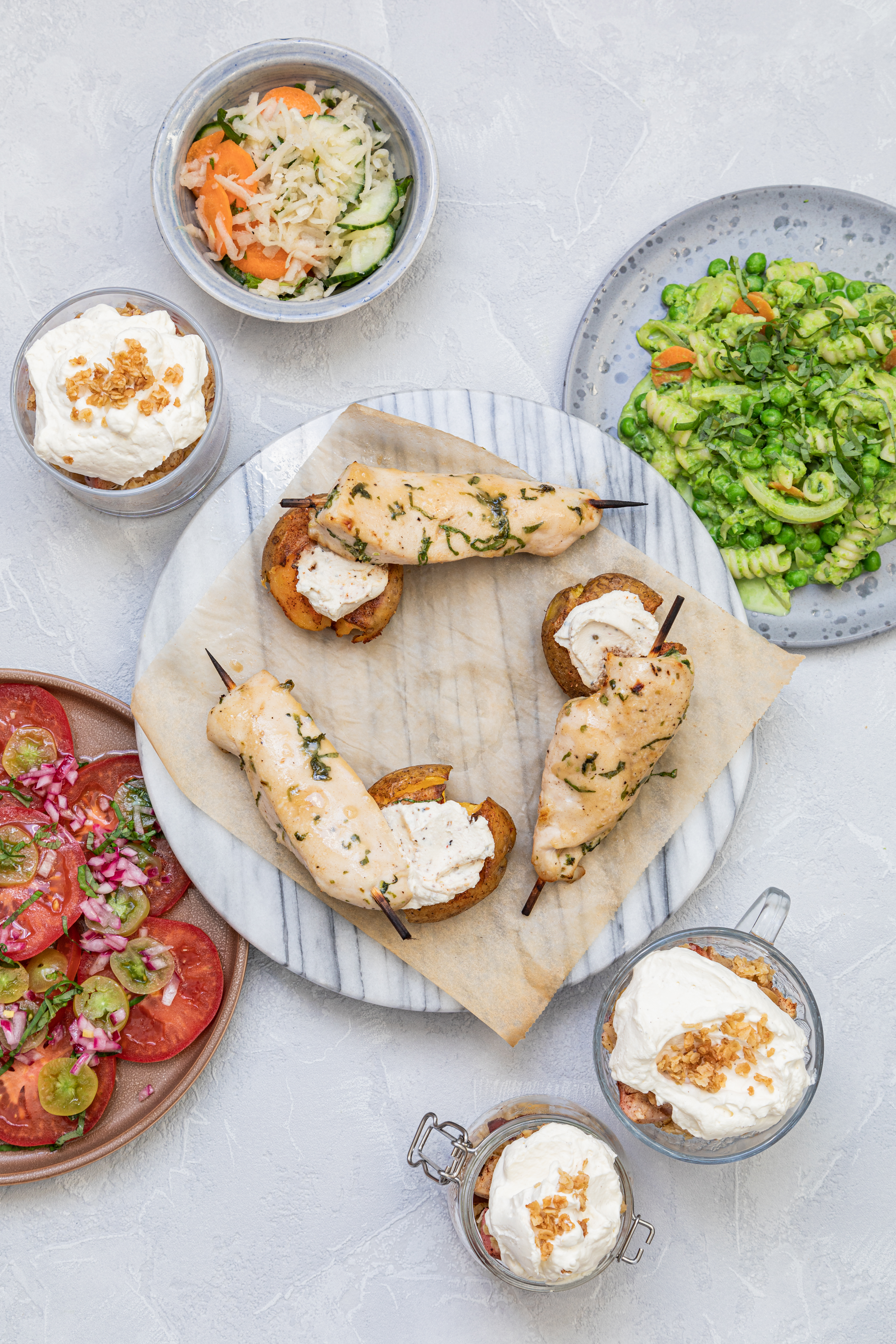 Pääraaka-aineita tämän syksyn kampanjassa ovat kotimainen siipikarjanliha, makoisat tomaatit, yrtit ja kasvikset sekä mainiot maitotuotteet, kuten kerma ja tuorejuusto. Lisäksi kotoisa peruna, mahtava proteiininlähde herne ja kotimainen pasta sekä maukkaat monipuoliset omenat ja pehmoinen kaura, tällä kertaa makeana herkkuna omenapaistoksen päällä.